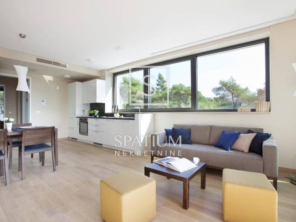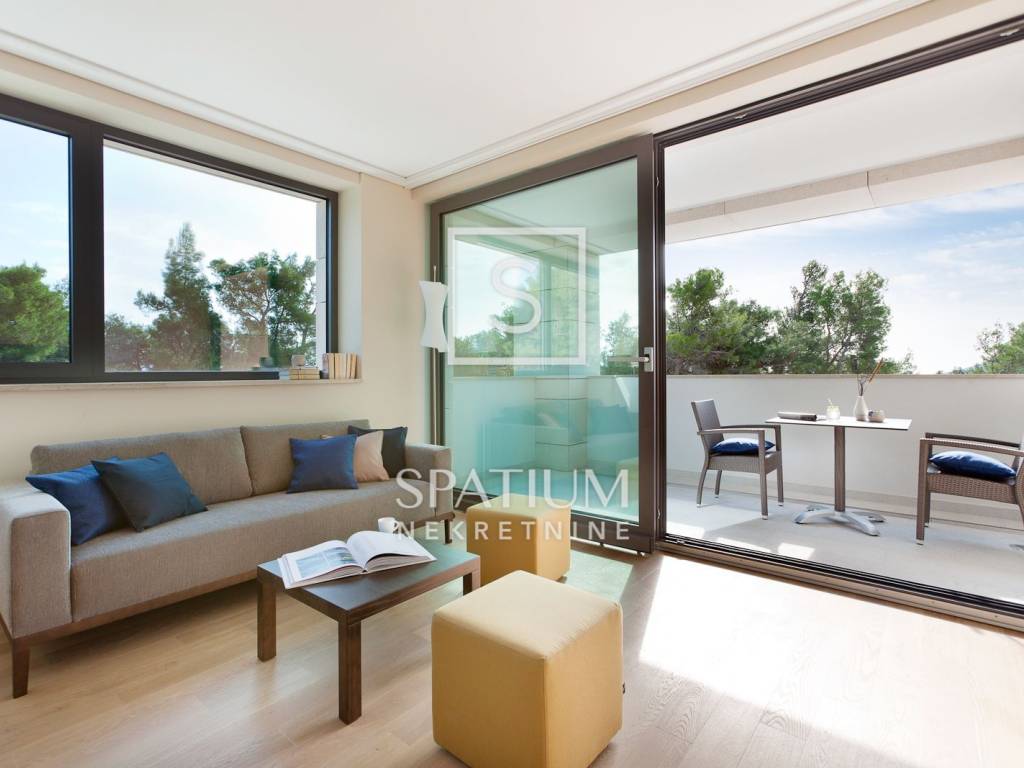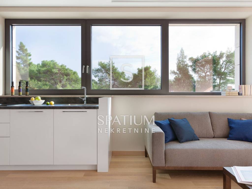 Ogni appartamento dispone di due terrazze – una con vista parziale sul mare e l’altra che si affaccia sulla pineta – offrendo il perfetto connubio tra atmosfera mediterranea e privacy. Gli spazi esterni come terrazze e logge garantiscono ulteriore comfort per il soggiorno all’aperto.