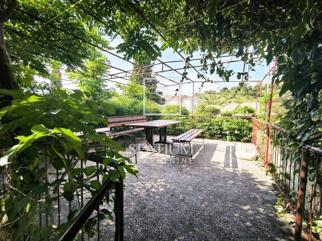 All'interno del giardino si trovano un giardino e due bellissime terrazze. Il tutto è circondato da piante mediterranee. La casa dispone anche di un garage di 15 m² e di uno spazio separato di 25 m² che, con piccole modifiche, può essere adibito a monolocale o a studio. Lo spazio separato è dotato di contatore elettrico separato. Di fronte alla casa, lungo la strada, c'è la possibilità di parcheggiare due auto. La distanza dal mare è di 250 m su strada pianeggiante ed è quindi una posizione perfetta sia per vivere che per essere affittata a turisti. La casa, che con una ristrutturazione ha un grande potenziale!