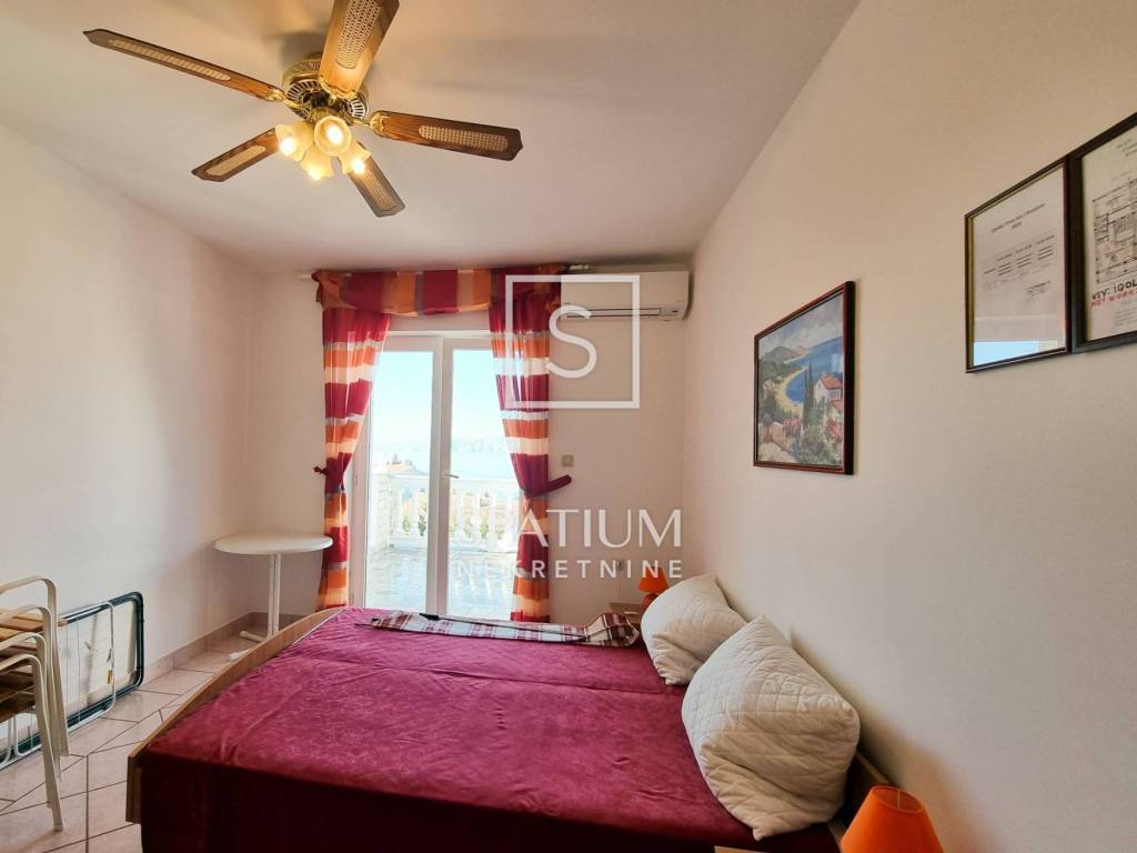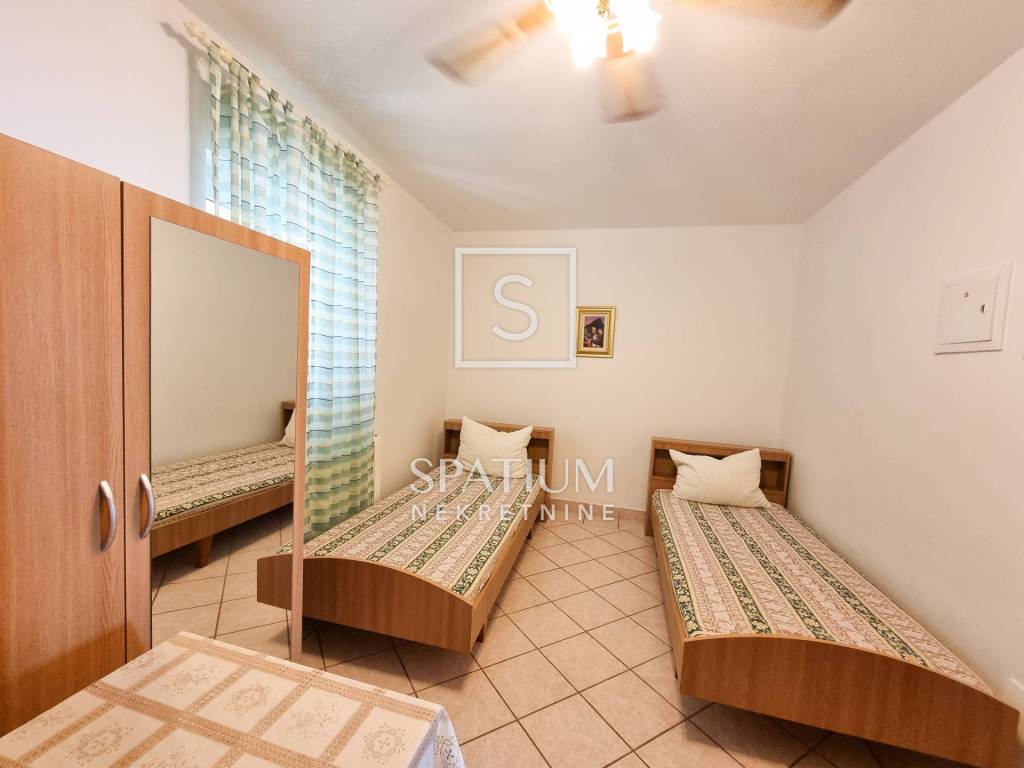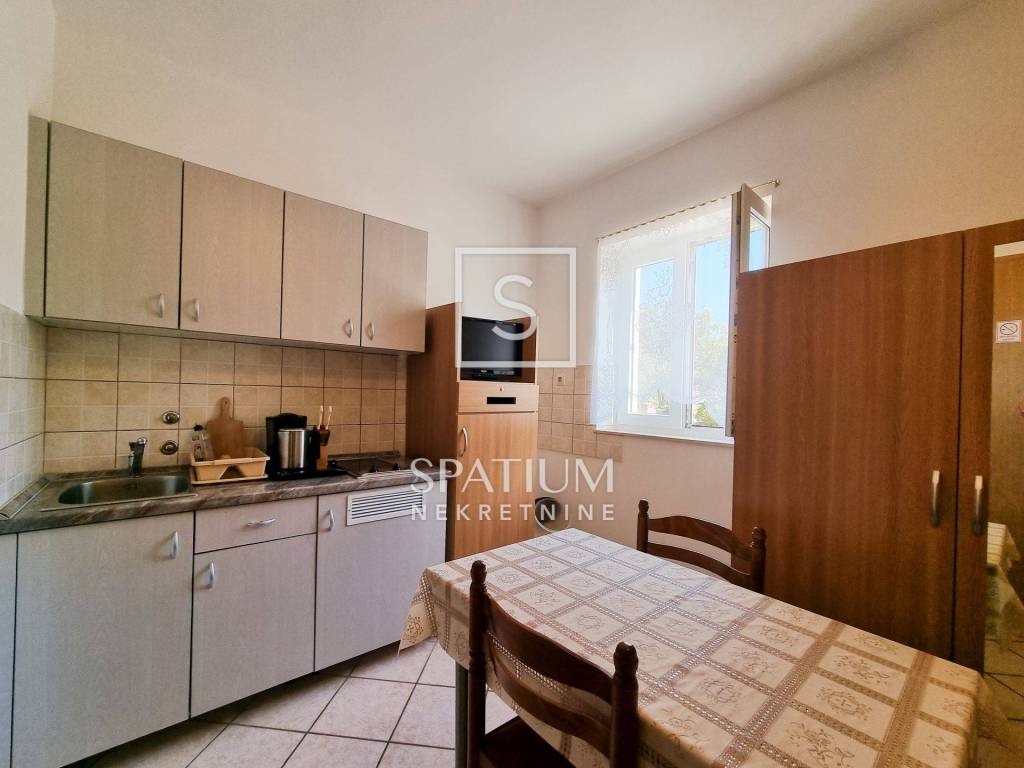 NOVI VINODOLSKI, proponiamo una casa con dieci appartamenti e ampio giardino situata in ottima posizione a soli 170m dal mare. La superficie abitabile è di 442 mq, mentre la superficie del giardino è di ben 800 mq. Si compone di un piano terra, due piani fuori terra e una mansarda, oltre a un locale caldaia e un ulteriore locale - taverna posto nel seminterrato. Il piano terra è composto da un soggiorno con angolo bar e servizi igienici, due monolocali, ciascuno dei quali ha una terrazza, una cucina con sala da pranzo, un soggiorno e un bagno con servizi igienici. Al primo piano si trova un appartamento trilocale con soggiorno, balcone, cucina e sala da pranzo, bagno e toilette, e un altro monolocale. Al secondo piano si trovano un monolocale con balcone e cinque monolocali, tre dei quali hanno il proprio balcone, mentre due no. Il cortile paesaggistico ha accesso carrabile e può essere utilizzato come parcheggio, dispone di un giardino con prato e barbecue e di un luogo di socializzazione. Nel giardino si trova una taverna con una superficie di ca. 50 mq, che si trova sotto la superficie del terreno. La casa offre una bellissima vista sul mare, è immersa nel verde e si trova in una zona tranquilla di Novi Vinodolski. Immobile idoneo all'esercizio di attività turistiche, di ristorazione o di servizi simili.