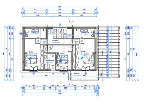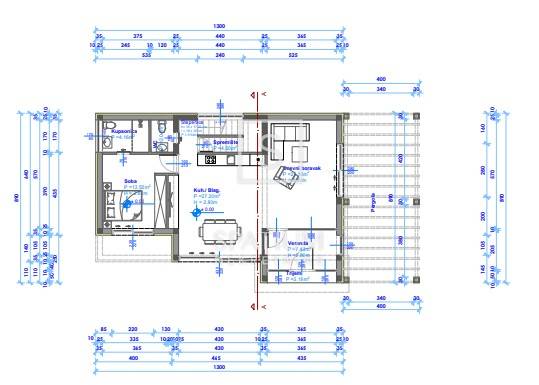 Secondo il progetto, è prevista la costruzione di una casa a due piani, dove al piano terra ci saranno una camera da letto con bagno, servizi igienici e un ampio soggiorno con cucina e zona pranzo con accesso alla veranda, e al primo piano tre camere da letto con bagni.
