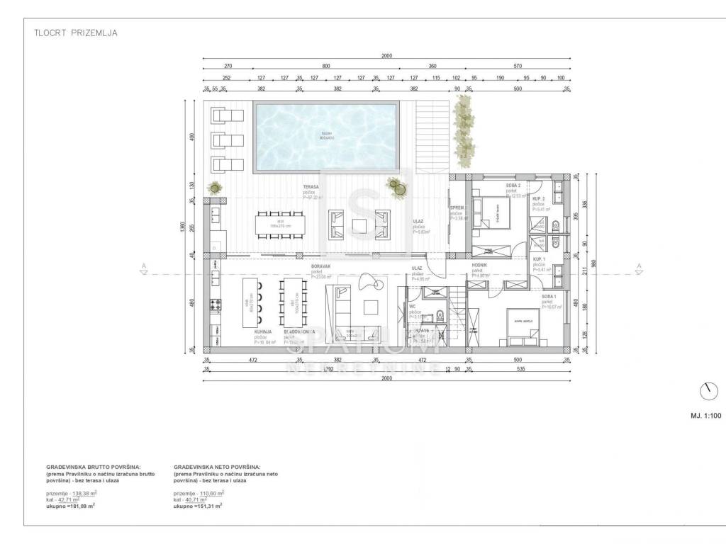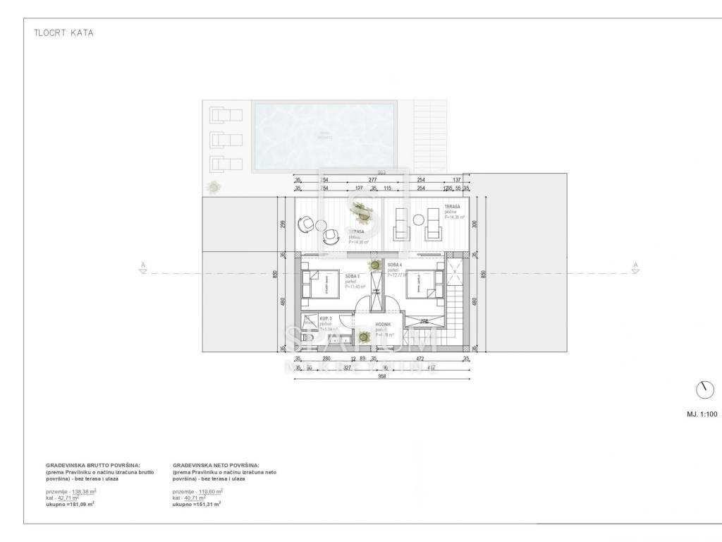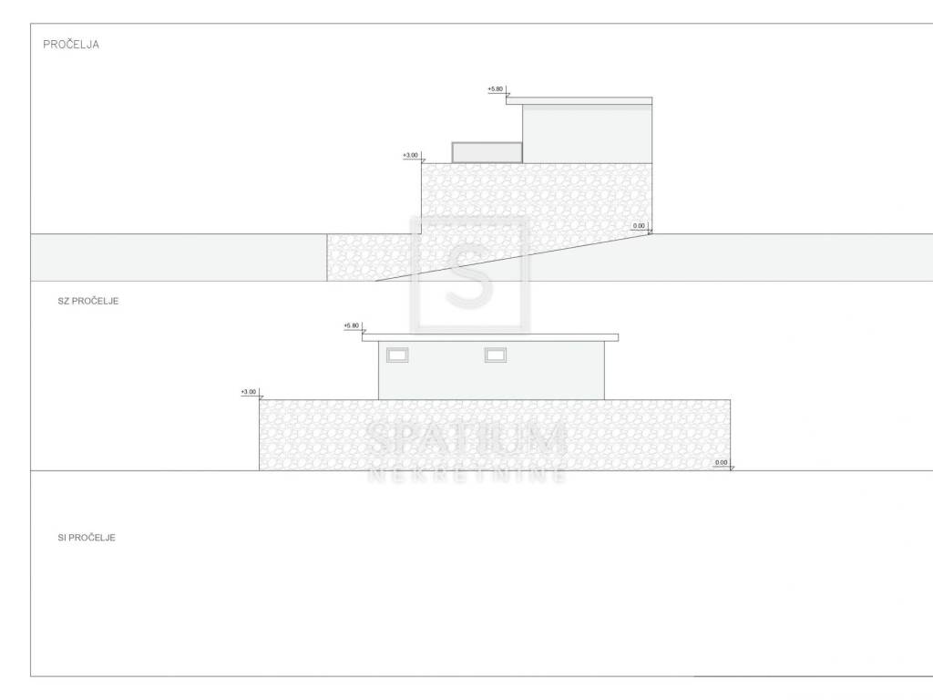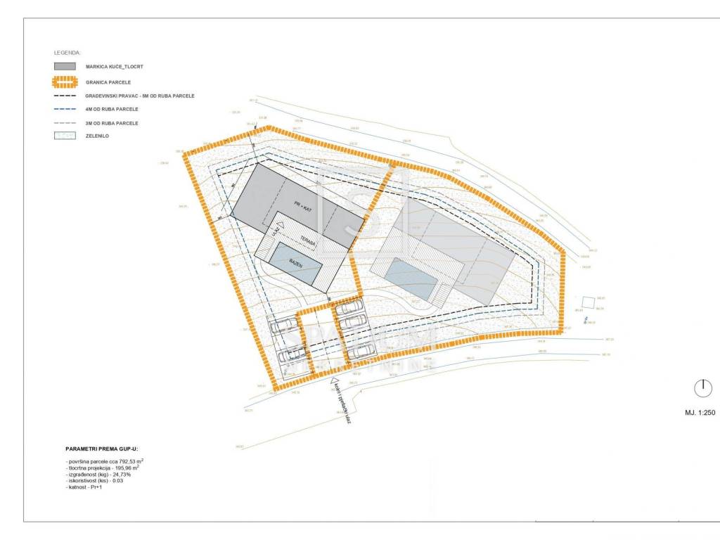 KAROJBA, proponiamo in vendita un terreno edificabile di circa 790 m² con progetto approvato e permesso di costruire valido per la realizzazione di una moderna villa con piscina, con una superficie netta di 185 m². Il progetto prevede un ampio soggiorno con cucina e zona pranzo, con accesso a una terrazza coperta e scoperta, quattro camere da letto, tre bagni e un ulteriore servizio al piano terra. Il terreno ha una forma rettangolare, è esposto a sud e si trova su una leggera pendenza, godendo così del sole per tutto il giorno. L’accesso è garantito da due strade asfaltate e le utenze di acqua ed elettricità si trovano accanto al lotto. È disponibile anche un altro terreno quasi identico con permesso di costruzione dello stesso proprietario.