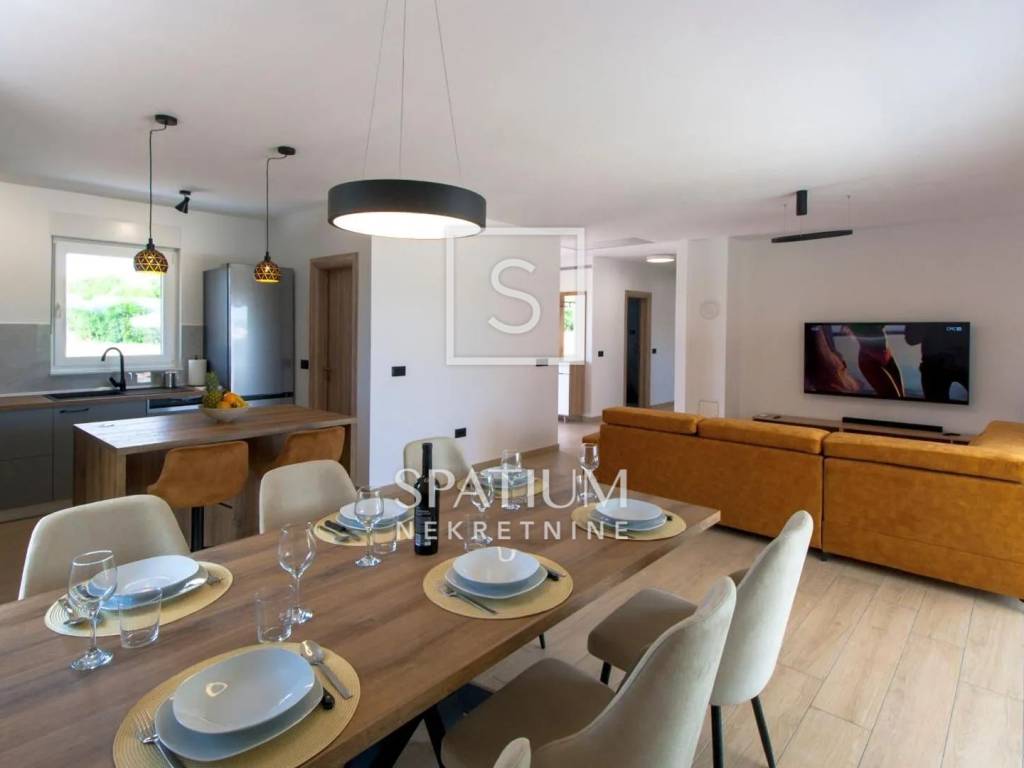 LABIN - OKOLICA, in vendita una casa prefabbricata a un piano con una superficie abitabile totale di 152 m², situata su un ampio e curato giardino di 3800 m², interamente all'interno della zona edificabile, che garantisce totale privacy e tranquillità.