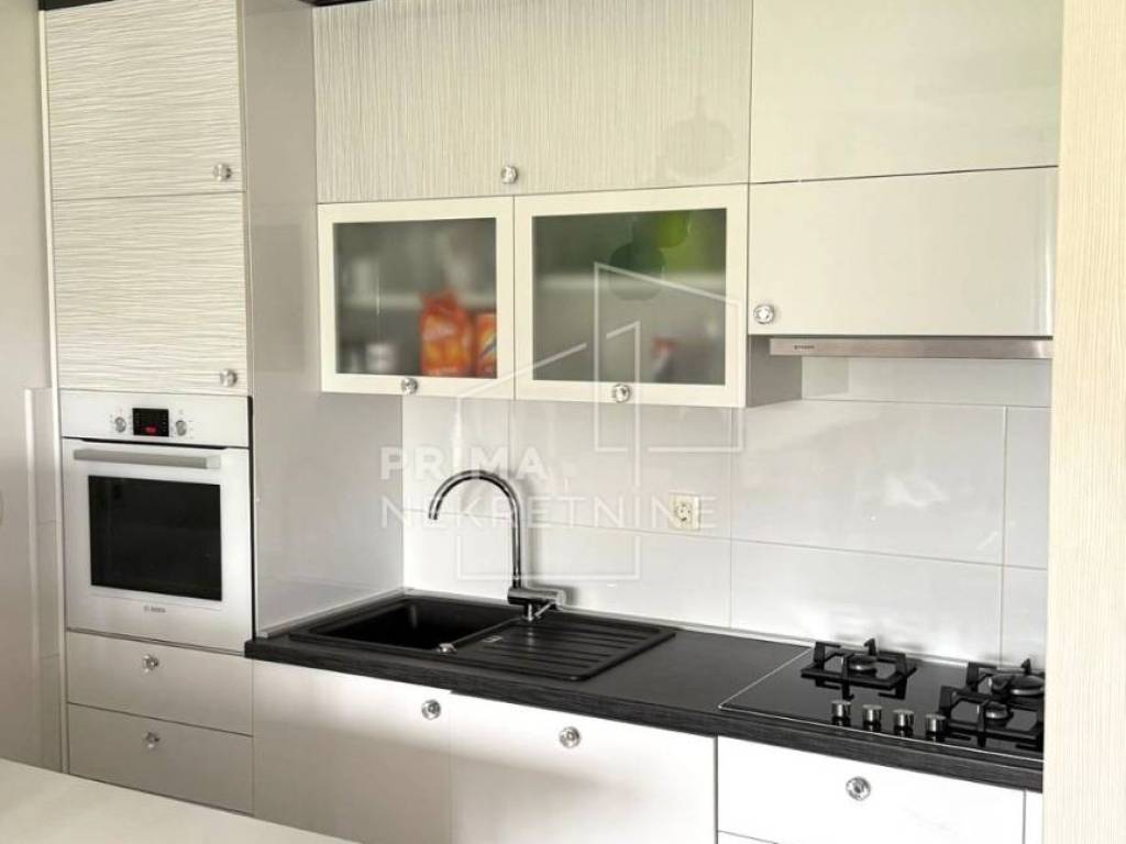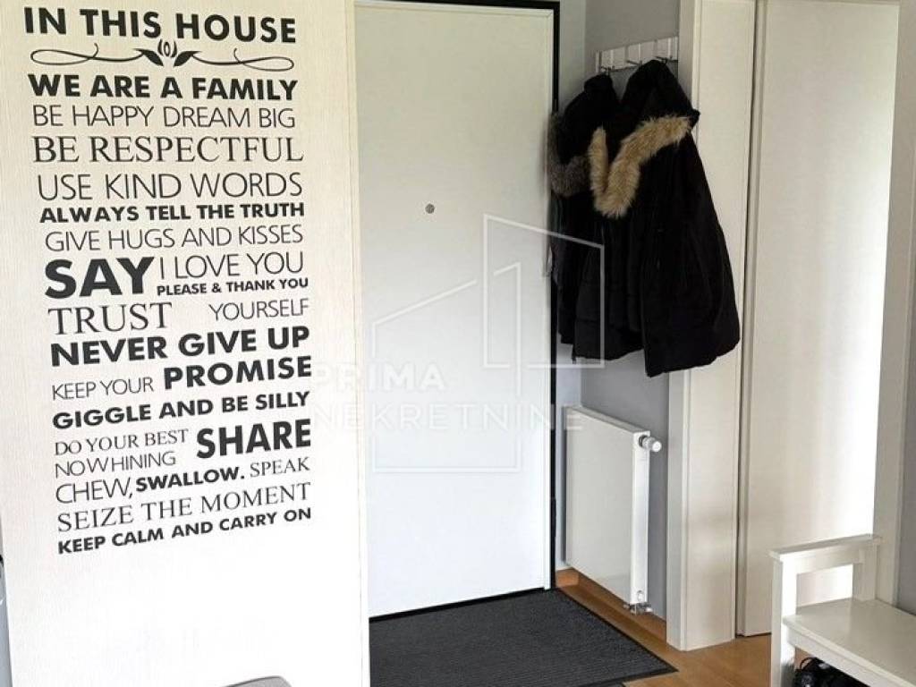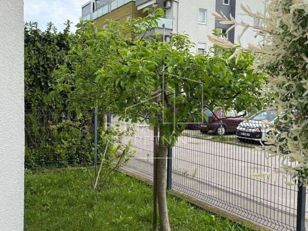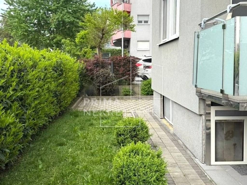A well-maintained two-room apartment of 50.03 m² is offered for sale, located on the elevated ground floor of a residential building built in 2012 in Kajzerica. The apartment includes a garden of 78.72 m² and an outdoor parking space of 11.50 m².