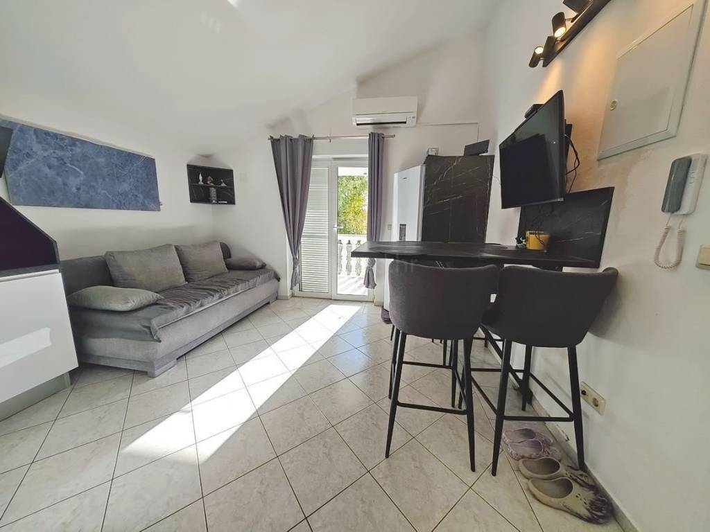 Si tratta di un appartamento più piccolo, su un unico livello, con una disposizione molto funzionale una tipologia raramente disponibile. Situato al primo piano di un edificio ben mantenuto, l’appartamento offre una superficie abitabile totale di circa 35 m². Comprende un soggiorno con cucina e zona pranzo, una camera da letto, un bagno e una terrazza. Gli interni sono particolarmente curati e completamente arredati, con elettrodomestici e mobili di alta qualità.