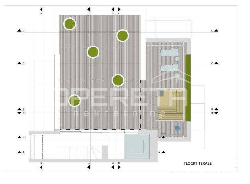 In a beautiful location overlooking the Ribnjak park and a few minutes walk to the main square, a three-story, three-bedroom apartment is for sale. The apartment has a total area of 262.89 m2 and is located on the second and third floors of the building with access to a roof terrace with a beautiful view of the city. The apartment consists of bedrooms, a study, a bathroom, a kitchen, a living room with access to a terrace and a beautiful roof terrace that contains a sauna and a hot tub, while the outside part is covered with an awning that can cover almost the entire surface of the terrace. The apartment is directly accessible by a separate external elevator, and it also has two separate external garage spaces located within the plot.