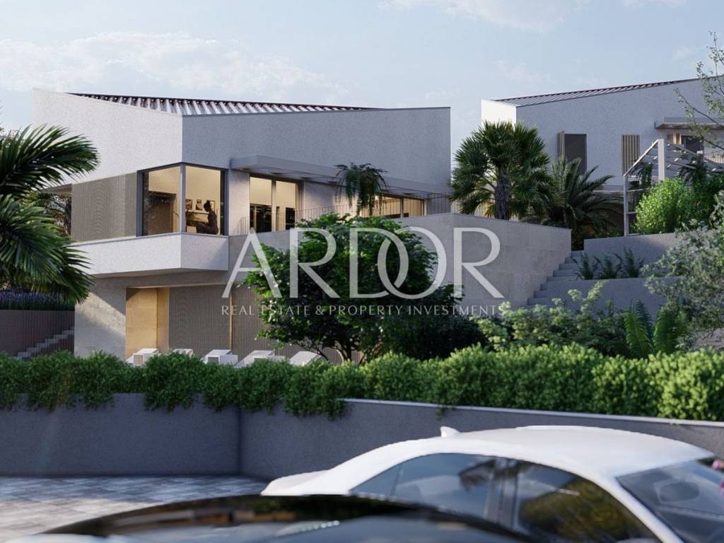 In a quiet location on the island of Krk, on a plot of 623 m², there is a modern villa with sea views that offers a high standard of living, comfort and privacy. The villa is spread over two floors with a total of 150 m² of carefully designed interior and an additional 282 m² of covered and uncovered terraces, ideal for enjoying the outdoors. It is part of a luxury complex that includes five villas, with shared facilities that include a tennis court, basketball and five-a-side football fields, an outdoor gym and a children's playground. The interior of the villa stands out for its airiness and abundance of natural light, thanks to large glass walls that blur the line between indoor and outdoor spaces. The open concept of the living room, kitchen and dining room creates a cozy and contemporary atmosphere, perfect for everyday life. The villa has three spacious bedrooms, each with its own en suite bathroom, as well as two additional guest toilets - one on each floor. For additional relaxation, a private spa area is available. The landscaped outdoor area includes a Mediterranean garden with an automatic irrigation system, spacious terraces and a 50 m² swimming pool, ideal for summer relaxation. The villa also comes with two private parking spaces. High-quality materials were used during construction, and the villa is equipped with a heat pump system for underfloor heating and cooling, ensuring a comfortable temperature throughout the year. The property is currently under construction, is being sold unfurnished, and completion is planned for early 2026. ID CODE: 2711 Ingrid Jelaska Agent s licencom Mob: 0919374797 Tel: +385 98 443 289 E-mail: ingrid.jelaska@ardor-realestate.com www.ardor-realestate.com
