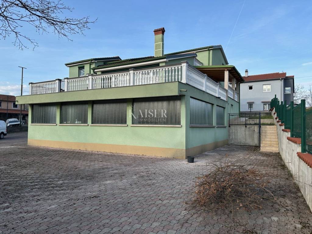 Kaiser Immobilien presenta una casa unifamiliare con un grande potenziale, situata su un ampio terreno che offre innumerevoli possibilità. La casa è composta da due unità abitative separate, un appartamento decorato al piano terra e l'altro a due piani che si estende attraverso il piano terra e il primo piano della casa. Grandi superfici vetrate, ampie terrazze conferiscono alla casa ulteriore opulenza. Nel seminterrato della casa si trovano un garage, un laboratorio con una superficie totale di 140 mq, un locale caldaia, un ripostiglio e un piccolo wc. La proprietà è circondata da un bosco, che è anche una zona verde senza ulteriori costruzioni consentite, un ambiente tranquillo e piacevole. La distanza dal centro di Viškovo e da tutti i servizi è di 5 minuti, mentre dal centro di Rijeka 15 minuti in auto. Immobile di grande capacità e potenziale sia abitativo che per svolgere attività commerciali di ampio respiro. Per ulteriori informazioni e visite contattare l'Agenzia Kaiser allo 091/5231376 oppure all'e-mail vanja@kaiser-immobilien.hr