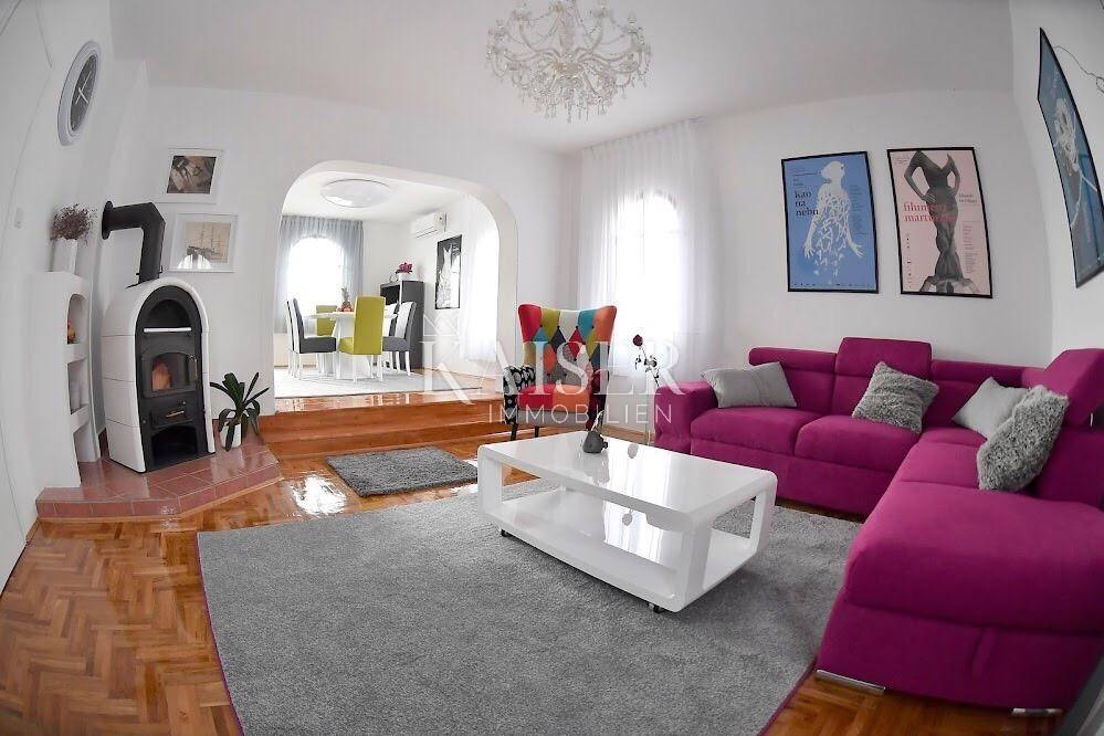 Kaiser Immobilien vi presenta una bella casa indipendente con piscina, vicino al mare a Klenovica. La casa è composta da un piano terra e un primo piano, dispone di quattro camere da letto, quattro bagni, due soggiorni, cucina, sala da pranzo e terrazzo. Il cortile è decorato nei minimi dettagli e contiene una piscina con area prendisole, una terrazza, un giardino e un barbecue. La casa è mantenuta e si trova in una bella zona di Klenovica. Fanno parte del giardino tre posti auto. La casa è utilizzata per il turismo.