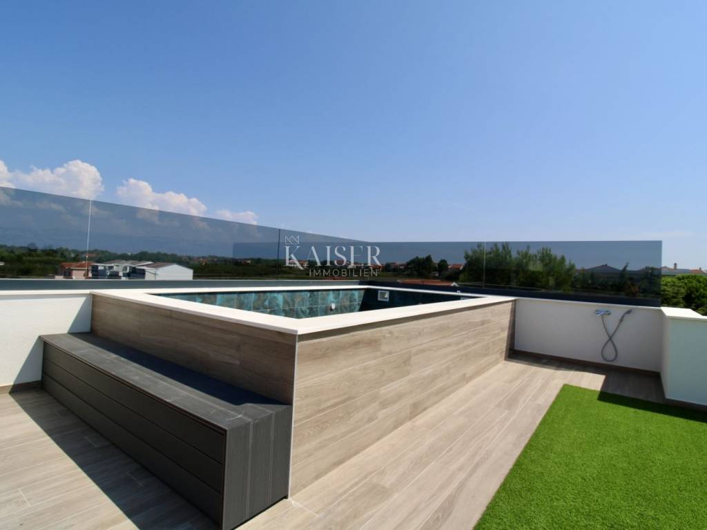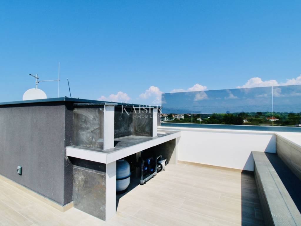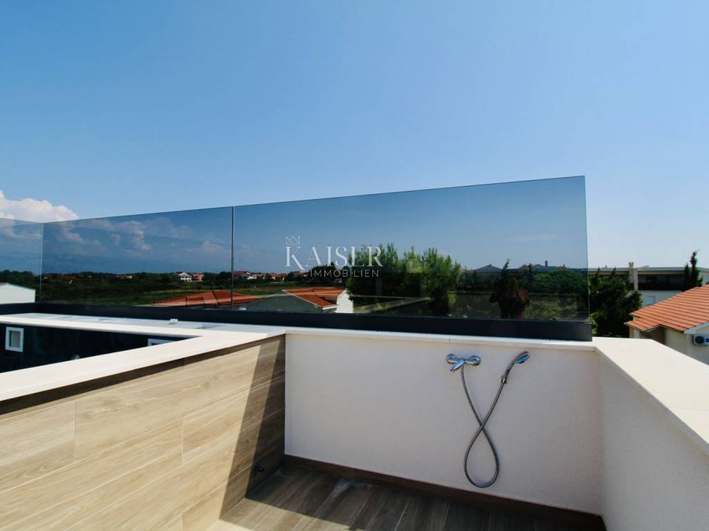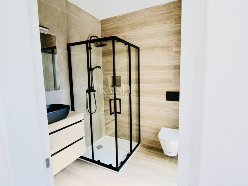 Zara, Privlaka appartamento spazioso e moderno a 70 metri dal mare Kaiser Immobilien propone in vendita un appartamento spazioso e moderno in una nuova costruzione, situato al secondo piano di un edificio che dista solo 70 metri dal mare. La superficie netta totale dell'appartamento, comprese le sue parti, è di 94,96 m2, e la superficie dell'appartamento stesso con terrazza è di 76,93 m2. L'appartamento è composto da un luminoso e arioso soggiorno open space, cucina e sala da pranzo con accesso ad un terrazzo coperto, ideale per rilassarsi e godersi lo spazio esterno con vista sul mare. Ci sono due camere da letto nell'appartamento. La camera da letto principale ha il proprio bagno, mentre il secondo bagno si trova nel corridoio, offrendo ulteriore comodità agli ospiti o ad altri membri della famiglia. Un'aggiunta speciale è la terrazza sul tetto di 72,10 m2, che offre lo spazio perfetto per il relax e l'intrattenimento. Sulla terrazza c'è una piscina, un pergolato e un barbecue, che rendono questa proprietà ideale per godersi la vita all'aria aperta, sia con la famiglia che con gli amici. L'appartamento viene venduto non arredato, il che consente ai futuri proprietari di adattare gli interni ai propri gusti ed esigenze personali. Nel prezzo sono inclusi due posti auto, il che rende la vita di tutti i giorni ancora più semplice. Questo bellissimo appartamento si trova in un edificio dal design moderno con un totale di sei appartamenti, costruiti con materiali di altissima qualità. L'edificio è ricoperto da un isolamento termico in polistirolo spesso 10 cm, che garantisce protezione termica ed efficienza energetica superiori. Inoltre, l'appartamento ha un certificato energetico A+ L'appartamento ha una perfetta combinazione di rivestimenti del pavimento: piastrelle in ceramica di alta qualità nel corridoio, in cucina, nei bagni e sulla terrazza, mentre il soggiorno e le camere da letto sono rivestiti con laminato che fornisce. calore e conforto. Gli infissi sono in PVC, con tripli vetri, oscuranti e zanzariere, garantendo ulteriore isolamento e protezione. L'appartamento è dotato di aria condizionata e riscaldamento elettrico a pavimento in tutte le stanze, che garantisce comfort durante i mesi più freddi. La porta d'ingresso dell'appartamento è antieffrazione ed antincendio, garantendo un elevato livello di sicurezza. Questo appartamento si trova nel tranquillo insediamento dalmata di Privlaka, noto per le sue spiagge pulite e la vicinanza a Zara. La distanza dal mare è di soli 70 metri, il che la rende una scelta perfetta per chi vuole godersi la vita al mare. Il centro della città è a 1,2 km di distanza, mentre Zara è a soli 20 km di distanza, consentendo un rapido accesso a tutti i servizi urbani. Questa proprietà è l'ideale per chi cerca un appartamento moderno, confortevole e lussuoso vicino al mare. Distanza dalle città principali: • Privlaka – Lubiana: 358 km • Privlaka – Budapest: 640 km • Privlaka – Monaco: 764 km • Privlaka – Vienna: 651 km • Privlaka – Praga: 925 km Prezzo e condizioni: La commissione di agenzia per l'acquirente è 3% + IVA e viene pagato alla conclusione del primo atto giuridico. Per ulteriori informazioni contattare: Nina Fabijan Tel: +385 955046197 E-mail: nina@kaiser-immobilien.hr