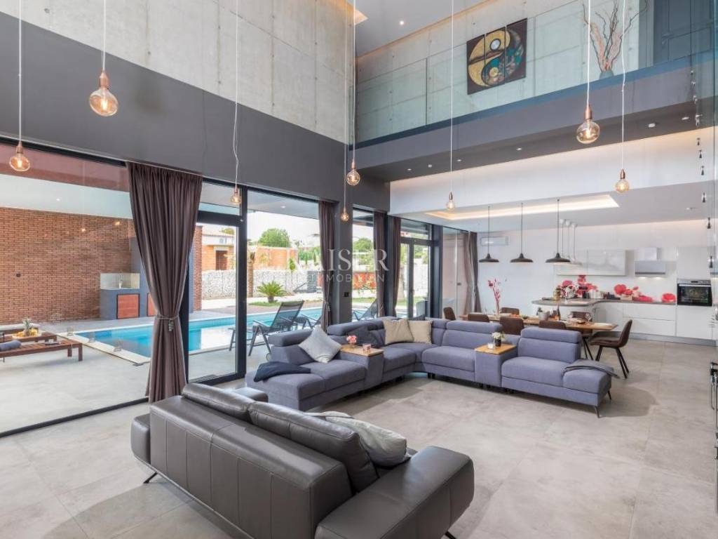 Kaiser Immobilien presenta un'opportunità unica per acquistare una villa di lusso in una posizione ambita. La villa si trova a soli quattrocento metri dal mare, il che le permette di godere di splendidi panorami comodamente dalla propria comodità. Si compone di 500 mq di superficie abitabile e si trova su un giardino con una metratura totale di 1.100 mq. L'ampio giardino è completamente paesaggistico e recintato. Offre parcheggio per diverse auto, un prato paesaggistico, una terrazza solarium e una piscina riscaldata con una superficie totale di 43 m2. La piscina è riscaldata da una pompa di calore inverter da 15 kW + pannelli solari sul tetto dell'edificio. Dispone inoltre di una disinfezione dell'acqua all'avanguardia tramite sale, che crea cloro naturale attraverso l'elettrolisi. Il solarium della piscina offre anche un barbecue e tanto spazio per socializzare e rilassarsi. Il piano terra della villa offre un open space destinato a cucina con sala da pranzo e soggiorno con terrazzo coperto. Fornisce inoltre una camera da letto e un bagno. Grazie allo spazio meticolosamente utilizzato, è adatto a persone con disabilità. Al piano superiore ci sono tre camere da letto con rispettivi bagni. I bagni sono integrati nello spazio in modo speciale e moderno per rendere il vostro soggiorno piacevole ed elegante. Le camere offrono una vista sul mare e sulla natura della regione. Offrono anche una terrazza coperta con posti a sedere. C'è il riscaldamento a pavimento e l'aria condizionata in tutte le stanze. La villa viene venduta completamente arredata e pronta per essere abitata, è un'ottima scelta per l'acquisto di una casa o di un investimento turistico in una località attraente. La prima spiaggia di sabbia è a pochi minuti a piedi. Servizi come farmacie, negozi, ristoranti e simili si trovano nelle immediate vicinanze. La posizione garantisce numerosi servizi facilmente raggiungibili, famose attrazioni turistiche e borghi medievali della costa, ben collegati alla proprietà e facilmente raggiungibili. L'Istria centrale e alcune delle città più importanti come Pola e Fasana sono a soli venti minuti di auto. Per ulteriori informazioni, contattare un agente. Ana Beović ana@kaiser-immobilien.hr +385 91 618 3332
