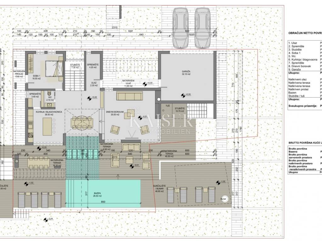 Kaiser Immobilien presenta un'opportunità unica per acquistare una villa sul mare. La villa si trova in una posizione eccellente, a soli 90 metri dal mare e a pochi minuti di auto dal centro di Albona. L'immobile è costituito da 465 m2 di superficie abitabile suddivisi in seminterrato, piano terra e primo piano. Il giardino è di 800 m2 ed è sfruttato per garantire la massima privacy. Il piano terra offre un garage per due auto. La villa è composta da 180 m2 di superficie abitabile al piano terra con terrazze coperte. Lo spazio è destinato a soggiorno con zona pranzo e cucina e una camera da letto con bagno. Pareti in vetro si estendono lungo entrambi i piani, regalando splendide viste sul mare e sulla natura della regione. Gli alti soffitti e una galleria nel soggiorno trasmetteranno al nuovo proprietario una sensazione di lusso e spaziosità. Il piano terra è orientato verso il mare e lo spazio interno è orientato verso la zona solarium della piscina e le terrazze coperte. Il giardino offre spazio a sufficienza per soddisfare diversi desideri ed esigenze personali. Al piano superiore ci sono tre camere da letto con bagno privato e una lavanderia. La vista dall'ingresso si estende fino al mare attraverso la galleria della villa, creando un'atmosfera unica. Tutte e tre le camere dispongono di terrazze private con vista sul mare. Nel seminterrato si trovano tre locali destinati ad uso personale, concepiti concettualmente come cantina con sala biliardo e palestra con area spa. Offre anche spazio per una lavanderia aggiuntiva. È dotato di finestre in alluminio a tre strati con tapparelle elettriche antieffrazione. Il tetto della casa è piatto e completamente utilizzabile, il che consente l'installazione di collettori solari. Dispone di un camino situato nel soggiorno e nella camera da letto principale. L'immobile rappresenta un'opportunità unica grazie alla sua posizione insostituibile. La sua penisola è diventata un'area protetta in cui non sono consentite ulteriori costruzioni, offrendo quindi una rara opportunità di completare una splendida villa. La zona è nota per la sua bellezza naturale e il mare cristallino, la natura incontaminata della zona e la vicinanza a tutti i servizi cittadini rendono questa proprietà una scelta perfetta. La villa è in vendita nella fase ROH-BAU. Possibilità di ultimare i lavori con lo stesso appaltatore della fase iniziale. Per ulteriori informazioni, contattare l'agente. Ana Beović ana@kaiser-immobilien.hr