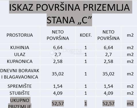 Just five kilometers from the center of Poreč and its beautiful beaches, a project of four modernly designed terraced houses is for sale. Poreč is known as one of the most desirable cities on the Istrian coast - a city with a rich cultural heritage, well-maintained beaches, developed infrastructure and numerous year-round amenities. This location offers the perfect combination of peaceful family life and proximity to all important amenities. The project includes four identical houses (A, B, C and D), which are currently in the high-level unfinished phase, and work is underway on installing the facade. Each house has a carefully designed layout, its own parking space for two cars and a landscaped green environment. House A is located on a plot of 183.6 m², while the total living area is 101.21 m², distributed over the ground floor and first floor. The ground floor has an entrance area, bathroom, kitchen, spacious living room with open-plan dining room, storage room and staircase leading to the first floor. The first floor has three bedrooms, a bathroom, hallway and loggia. Next to the house are two parking spaces and a green garden, which provides additional comfort and privacy. Advantages: Excellent location - only 5 km from the sea and the center of Poreč Modern design and quality construction Private parking and garden Functional layout Ideal for family life or as an investment for tourism This project represents an excellent opportunity to buy a modern house in Istria, near the sea, with a balanced ratio of quality, comfort and location. ID CODE: IS1518797 Kristina Benčić Asistent u posredovanju Mob: 098/192-3830 Tel: 052 770 811 E-mail: kristina.bencic@dogma-nekretnine.com www.dogma-istra.com