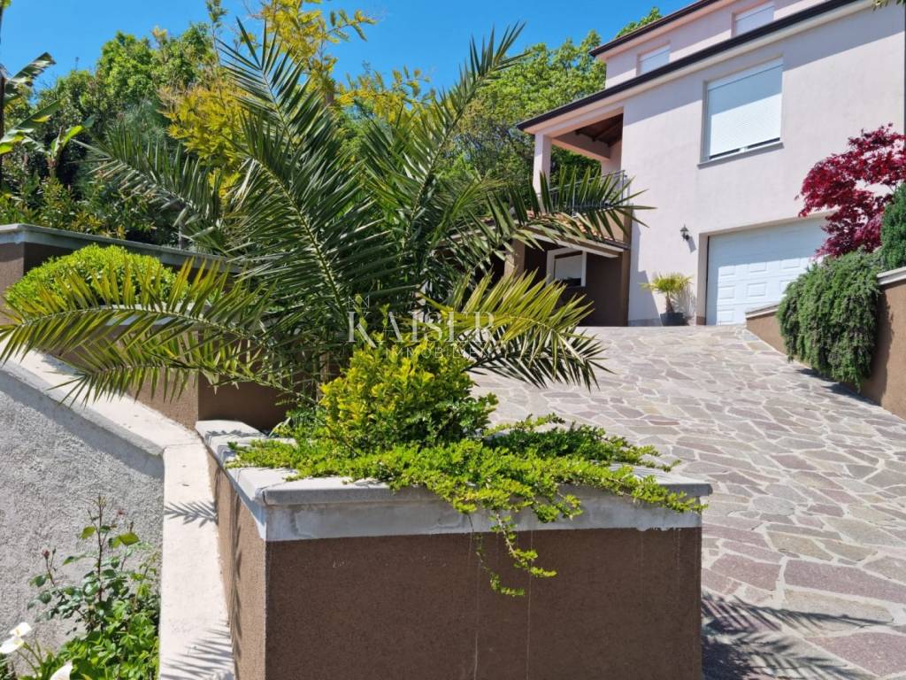 Una proprietà eccezionale sulle pendici del Parco Naturale dell'Učka con vista sull'intero Golfo del Quarnero, sulle isole di Krk e Cres e sulla nostra piccola ma famosa stazione sciistica di Platka. Tutto questo e molto altro è a tua disposizione da questa meravigliosa proprietà in una posizione tranquilla e una casa con un'energia estremamente positiva. Concetto familiare, il cui piano terra è dominato da un ampio garage con la più bella vista sul tin pet, locale caldaia con riscaldamento centralizzato a pellet e caldaia da 300 L per l'acqua calda, cucina lavanderia, dispensa, un servizio igienico, taverna interna e taverna esterna - sotto una veranda coperta che dispone di cucina esterna completamente attrezzata, forno per il pane in muratura, grill e piano cottura a gas, acqua calda e fredda e attrezzature per ospitare 24 persone, luogo ideale per riunioni e riunioni di famiglia. L'esposizione della casa garantisce completa privacy dagli scorci vicini. Attraverso la taverna interna e il garage, il resto della casa è collegato alla parte abitativa della casa da un'ampia scala. Il primo piano è dominato da un ampio atrio, doppie porte che conducono alla sala da pranzo e al soggiorno e una cucina funzionale e spaziosa separata da una porta click-clack. Soggiorno attrezzato con mobili Natuzzi, sala da pranzo Calligaris con tavolo allungabile da 6 a 12 posti. Accanto all'ingresso principale della casa c'è un ampio bagno con cabina doccia e 1 camera da letto per due persone e una scrivania, con mobili realizzati con materiali di alta qualità realizzati su misura. Al secondo piano troviamo un disimpegno in galleria, un bagno padronale con cabina doccia e vasca idromassaggio e servizi igienici. Due camerette con vista mare, una matrimoniale con cabina armadio da cui si accede anche alla mansarda della casa. La casa è dotata di costosi mobili su misura e mobili di design comodamente inseriti in uno spazio che è una casa spaziosa e accogliente per la famiglia. Tutto dentro e intorno alla casa è organizzato e curato in modo che possa essere spostato immediatamente e offre un comfort eccezionale, privacy ed edonismo disponibili tutti i giorni.