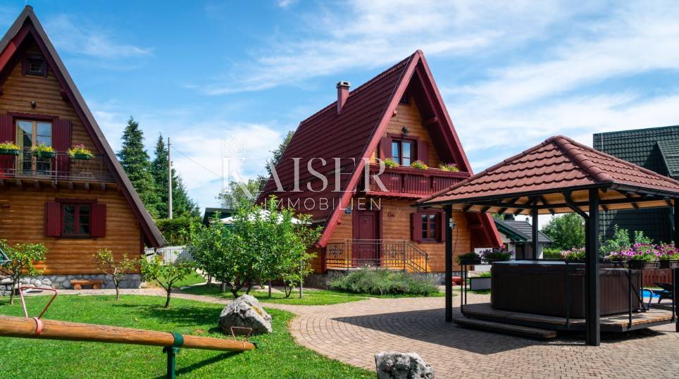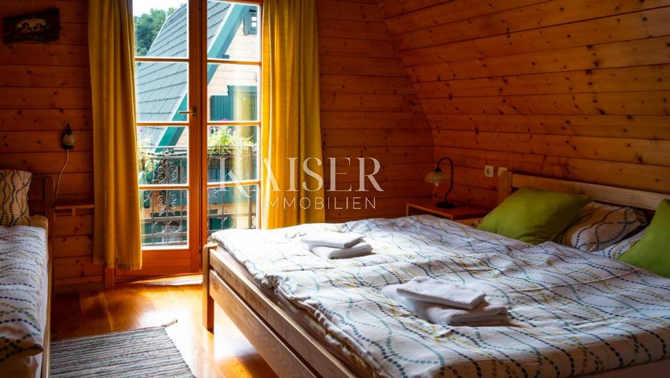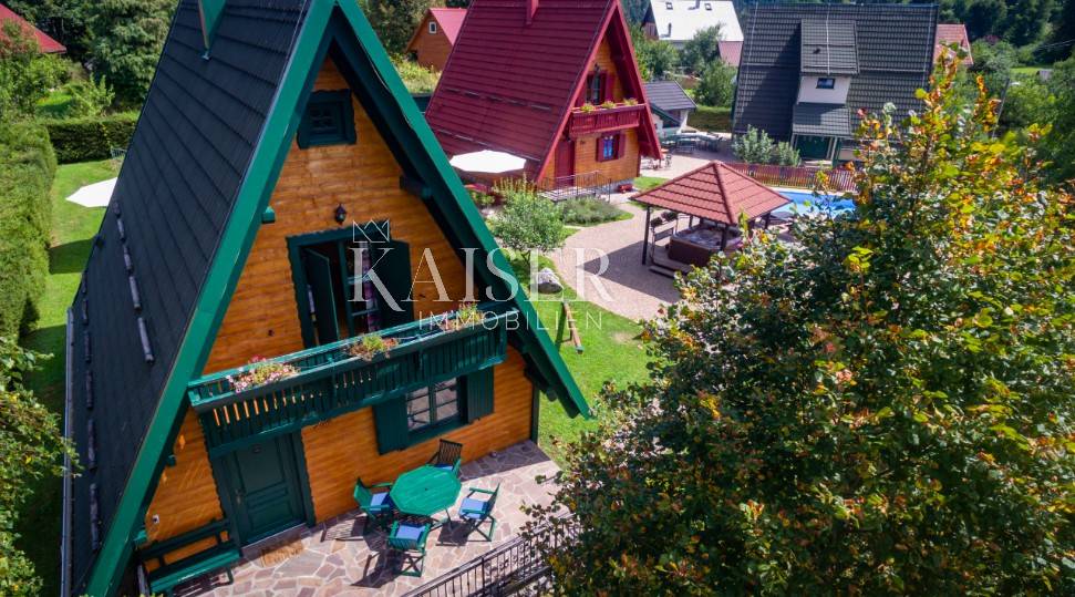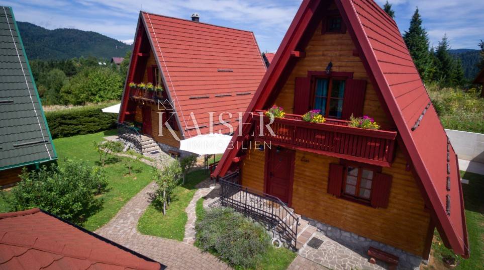 Kaiser immobilien media la vendita di una bellissima località turistica nel Gorski Kotar in una posizione eccezionale - all'ingresso del Parco Nazionale del Risnjak. Il complesso è composto da quattro bellissime case in legno con piscina all'aperto e jacuzzi. La superficie abitabile delle case è di 85 mq, mentre una casa è di 160 mq. C'è anche una struttura ausiliaria composta da una sauna e una taverna e la sua superficie è di 70 m2. La disposizione della casa è tale che al piano terra si trovano una cucina, un ampio soggiorno, un wc separato e un bagno, mentre al primo piano ci sono due camere da letto con balcone e una splendida vista sulla natura e sulle montagne. Tutte le case di montagna sono arredate. Un'ottima opportunità di investimento, dato che le case sono occupate tutto l'anno, hanno ottimi giudizi di clientela e una consolidata attività turistica.