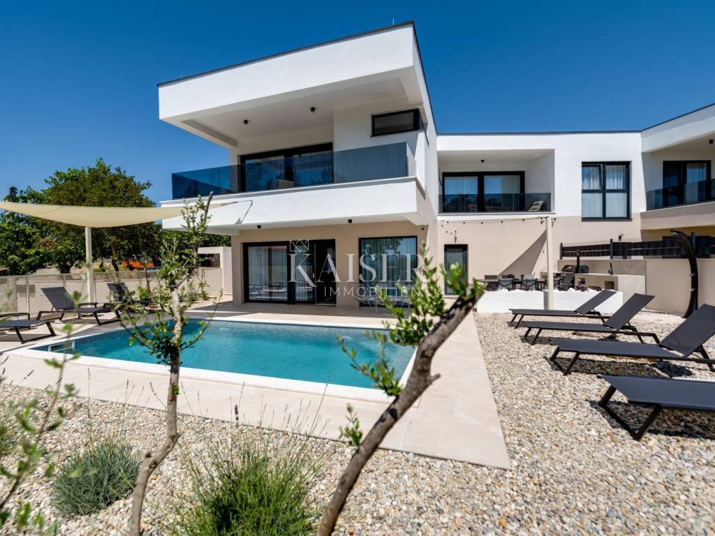 Kaiser immobilien media la vendita di un bellissimo edificio bifamiliare situato a Omišalj, il primo luogo abitato dopo essersi trasferito dalla terraferma alla parte nord-occidentale dell'isola di Krk. Il concept di questa moderna villa bifamiliare si sviluppa su due piani per una superficie totale di 195 mq. Al piano terra si trova un'ampia zona giorno composta da soggiorno, cucina e sala da pranzo, oltre a un bagno, una zona sociale e una lavanderia. Ci sono quattro camere da letto e tre bagni al primo piano. Due camere hanno accesso ad ampi balconi coperti dai quali la vista spazia fino al verde rasserenante del vicino bosco, dato che l'edificio si trova al confine con la cintura verde, e allo stesso tempo a 500 m dal mare. Dal soggiorno si accede ad un ampio terrazzo con giardino dove si trova una piscina con zona prendisole. Due posti auto appartengono alla struttura. Nella costruzione vengono utilizzati materiali di prima qualità, il riscaldamento a pavimento è realizzato tramite una pompa di calore e tutte le stanze sono climatizzate. Il completamento della costruzione è previsto per la fine del 2023. Omišalj si trova su una scogliera alta 85 metri, che gli conferisce un fascino speciale, ed è, insieme alla città di Krk, il più antico insediamento vivente dell'isola. Sebbene Omišalj sia menzionato in XII. secolo come "Castri musculi" (dal latino "Ad musculi" - luogo delle conchiglie) il luogo ha fondazioni preistoriche. Il suo sviluppo può essere rintracciato dall'epoca liburnica e romana, attraverso i principi Frankopan di Krk fino ai giorni nostri. Nell'area del centro storico esisteva un castello preistorico (castellier), e nelle immediate vicinanze si trova anche l'antico sito di Fulfinum, a carattere di basilica la cui forma base è a croce latina. È stato conservato fino all'altezza del tetto ed è l'unico oggetto sacro conservato del suo genere non solo sull'isola di Krk, ma anche su tutta la costa croata e, secondo alcune fonti, il più grande del Mediterraneo.