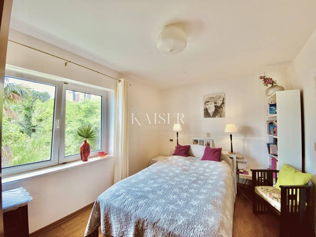 L'agenzia immobiliare Kaiser Immobilien di Abbazia presenta un appartamento di grande fascino in una villa storica della prima metà del XX secolo, a soli 100 metri in linea d'aria dalla costa.