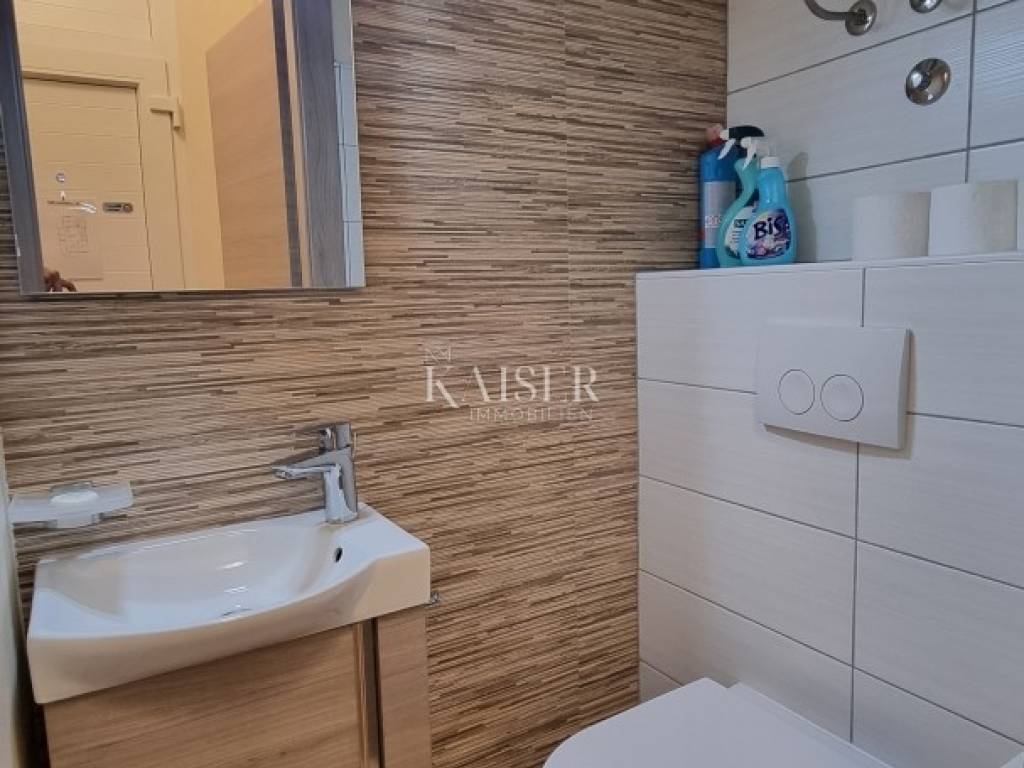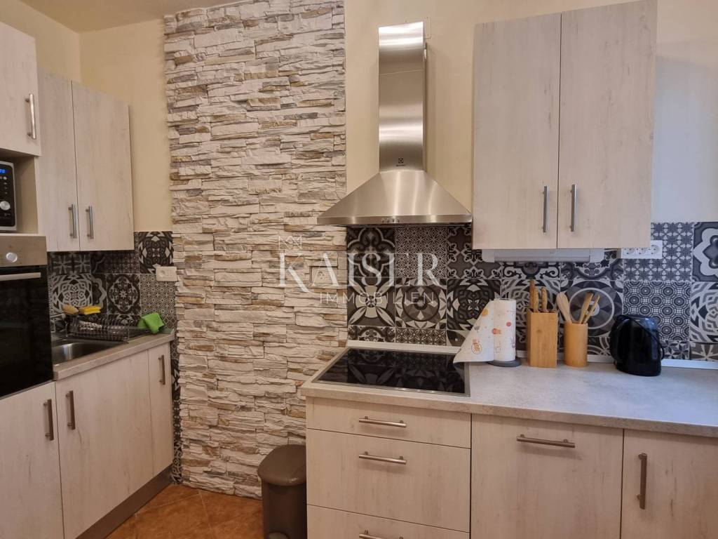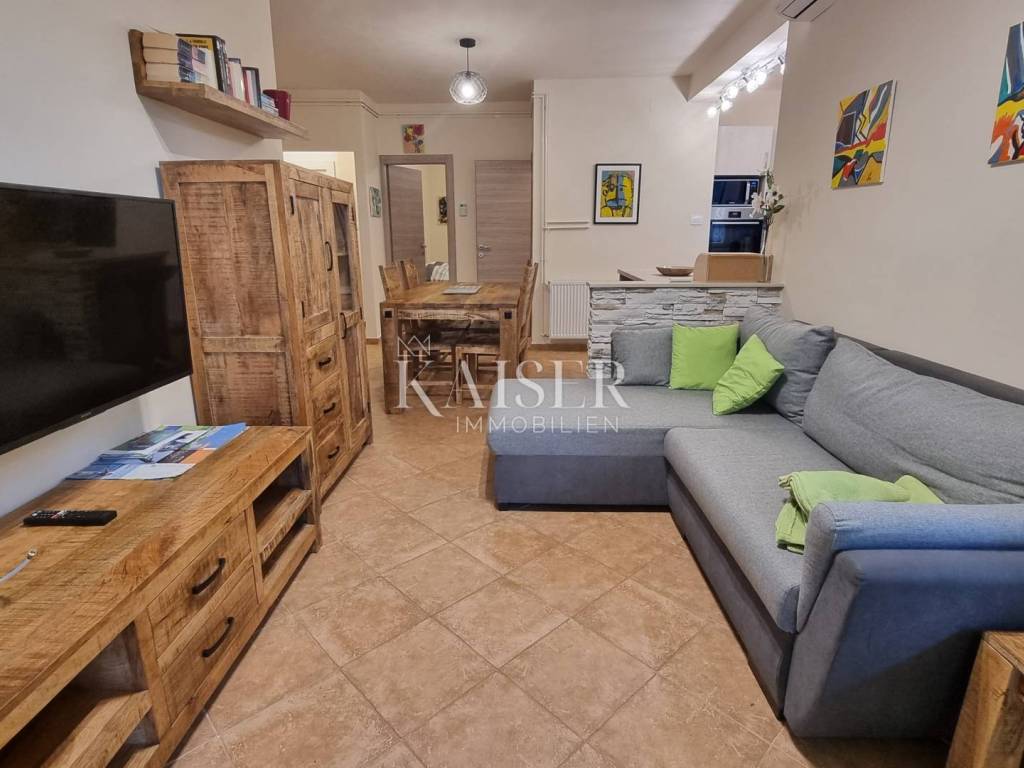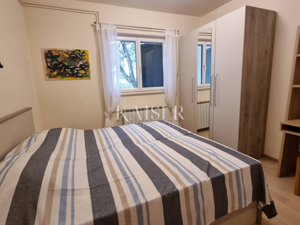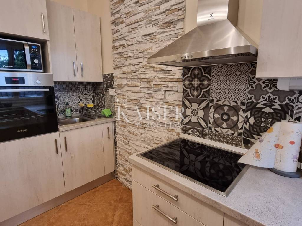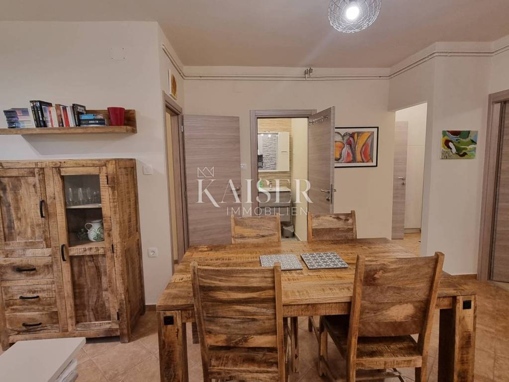 Kaiser Immobilien presenta un bellissimo appartamento recentemente ristrutturato al piano rialzato in una posizione privilegiata a Selce, non lontano da Crikvenica. L'appartamento si trova al primo piano, sul lato sud di un edificio con un totale di 5 unità abitative. L'appartamento ha una superficie abitabile totale di 56,55 m² ed è composto da un soggiorno con cucina e sala da pranzo, due camere da letto, ripostiglio, bagno, WC separato e un ampio balcone. L'appartamento viene venduto completamente arredato e non sono previsti ulteriori investimenti. L'appartamento è stato completamente ristrutturato nel 2023. In quell'occasione, sono stati sostituiti tutti gli impianti idrico ed elettrico, gli infissi in alluminio esterni e interni, il riscaldamento centralizzato elettrico e i condizionatori per il riscaldamento e il raffrescamento. I condizionatori sono Daikin, uno in soggiorno e l'altro in camera da letto. La cucina è realizzata su misura con elettrodomestici Electrolux e Bosch. Nel ripostiglio sono presenti una lavatrice e un'asciugatrice AEG. L'appartamento non dispone di un posto auto privato e non ha vista mare. Si trova in una strada tranquilla, senza traffico e rumore, a 350 metri a piedi dalla prima spiaggia. La documentazione è in regola. Classificato con 3***, è in funzione turistica. Distanze dall'appartamento: Fiume: 35 km Aeroporto: 25 km Zagabria: 165 km Novi Vinodolski: 6 km Panificio: 300 m Negozio Konzum: 280 m Farmacia: 280 m Ufficio postale: 280 m Per qualsiasi domanda, si prega di contattare l'agente: Davor Piškulić davor@kaiser-immobilien.hr +00 385 95 583 8240 WhatsApp, Viber