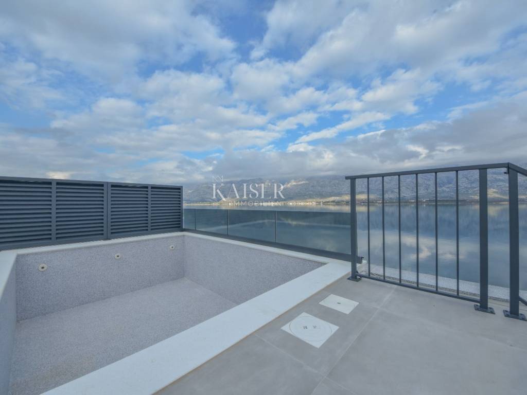 Kaiser immobilien media la vendita di un attico di lusso, in prima fila sul mare, a Vinjerac, non lontano da Zara. Vinjerac è un luogo pittoresco con una ricca tradizione marittima e un irresistibile fascino mediterraneo. Si trova su una penisola sul lato sud-orientale del Canale di Velebit, a circa 35 km a nord-est di Zara. Quando arriverai sul posto, il panorama che vedrai ti lascerà senza parole. L'appartamento con una superficie abitabile di 134,85 m2 si trova al 1° piano di un edificio di nuova costruzione, situato in prima fila al mare. Si compone di tre camere da letto, soggiorno con cucina e sala da pranzo, disimpegno e due bagni. C'è anche una terrazza coperta di 14,90 m2, ideale per godersi le serate estive, e una terrazza scoperta di 9 m2 con recinzione in vetro che toglie il fiato con la sua vista panoramica sul mare e sul monte Velebit. Ulteriore caratteristica è la terrazza panoramica di 101 mq, raggiungibile tramite scala interna, sulla quale si trova la piscina con zona solarium e doccia. Nella costruzione e nell'arredamento sono stati utilizzati materiali di prima qualità, tanto che l'oggetto ha ceramiche integrate di alta qualità, il riscaldamento a pavimento è fornito da pompa di calore, aria condizionata in tutte le stanze, massiccia carpenteria in alluminio, tapparelle automatiche e zanzariere . L'appartamento è dotato di posto auto. La provvigione di agenzia per l'acquirente è del 3% + IVA e viene pagata in caso di acquisto di un immobile, alla conclusione del primo atto legale.