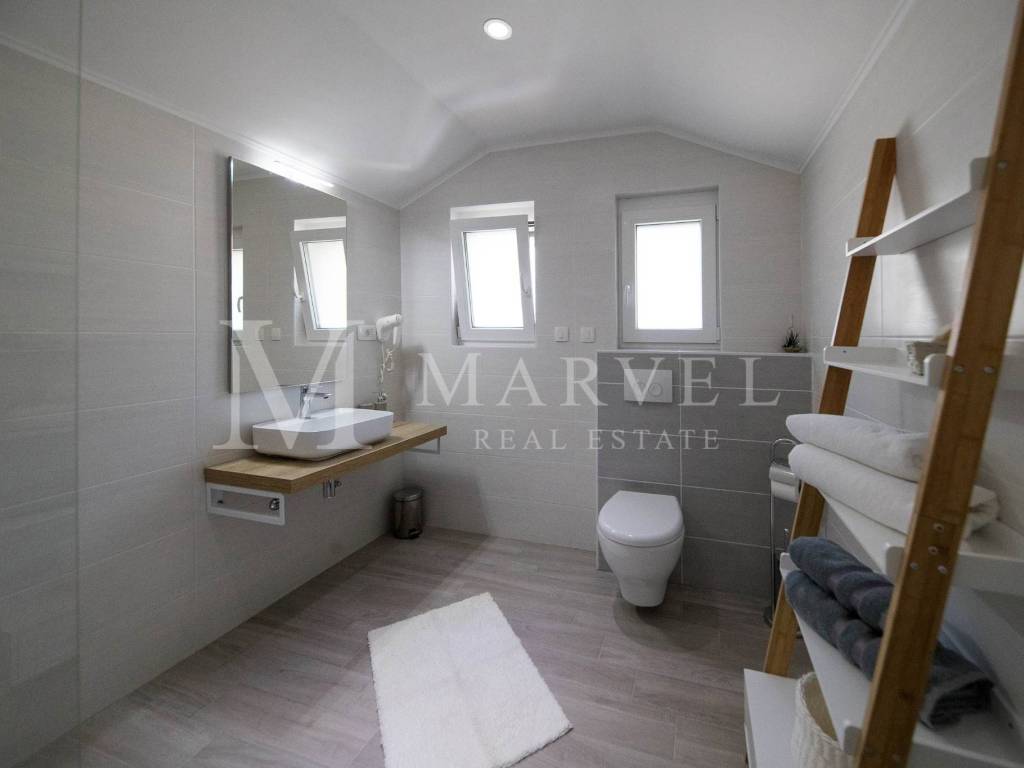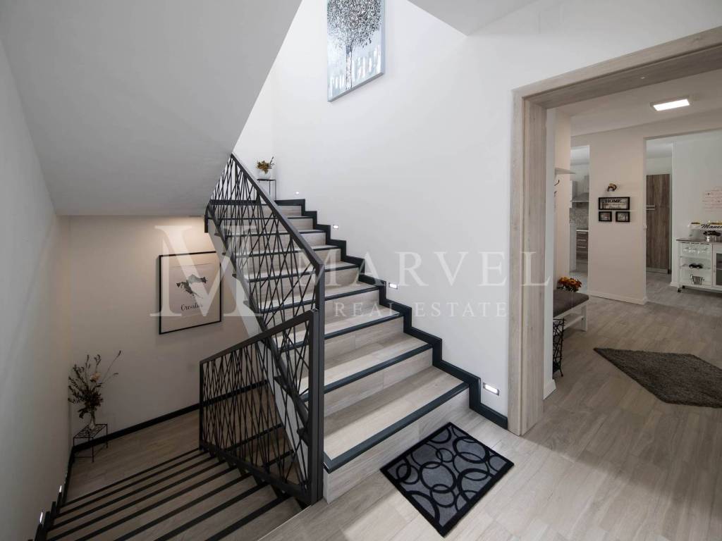 In vendita una lussuosa casa indipendente nel retroterra di Crikvenica, ideale per la vita familiare o come investimento nel turismo. La casa si estende su 340 m di superficie abitabile, suddivisi tra seminterrato, piano terra e mansarda.