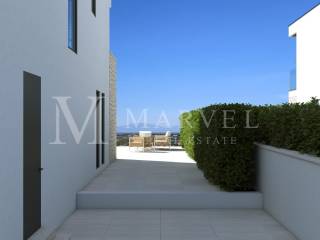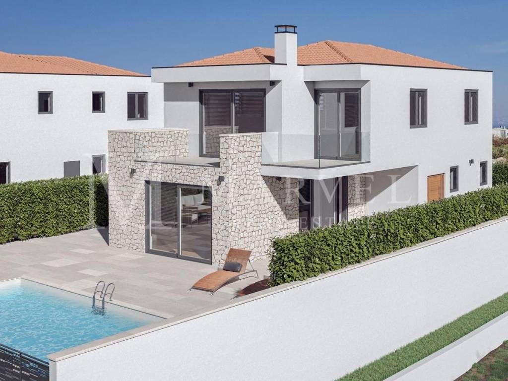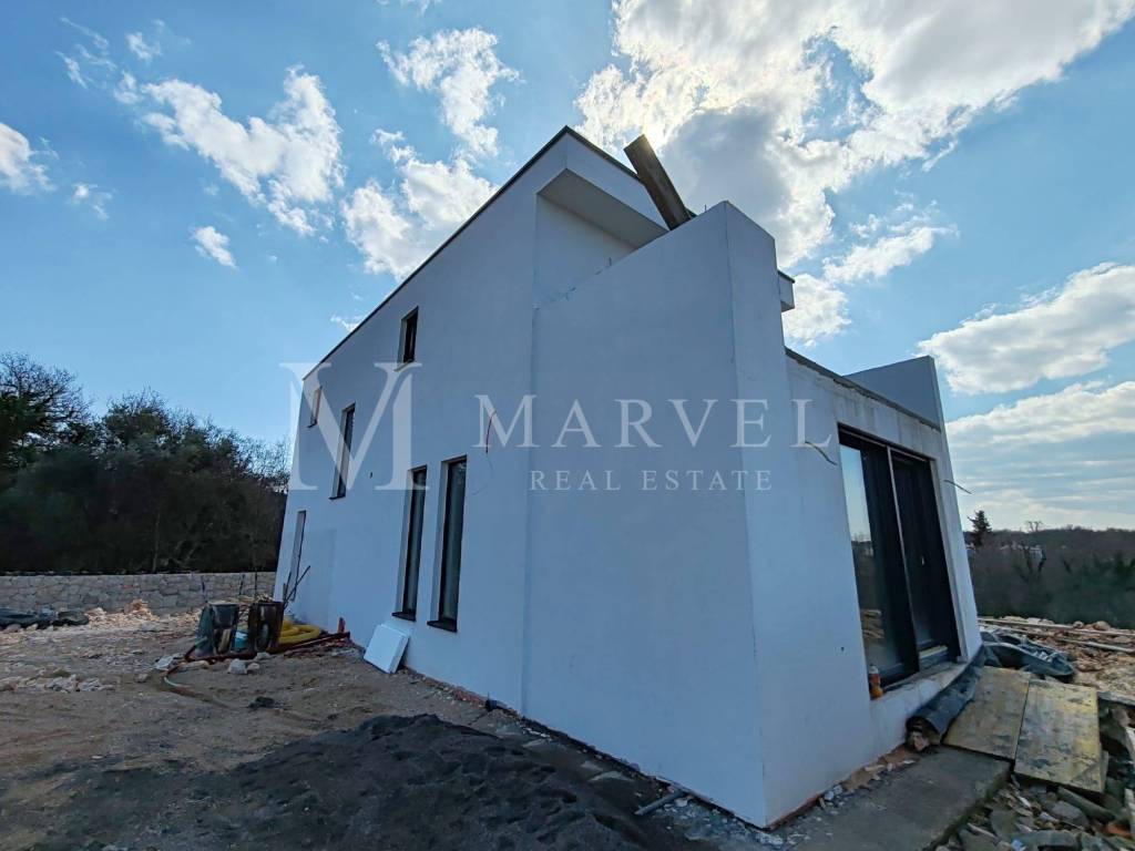 In vendita una casa indipendente in costruzione, con una superficie totale di 157 m. Si trova in una zona tranquilla e attraente a Malinska, sull'isola di Krk, su un terreno di 250 m. La proprietà dista solo 800 metri dal mare e da tutti i servizi principali. Il giardino comprende una piscina di 32 m e due posti auto.