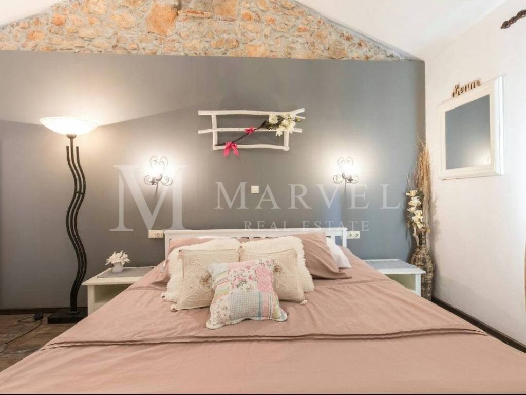 In vendita una casa in pietra adattata, pronta per l'ingresso immediato, situata nell'area di Malinska, sull'Isola di Krk. La casa è composta da piano terra e primo piano, e include anche un immobile ausiliario che può essere utilizzato come appartamento.