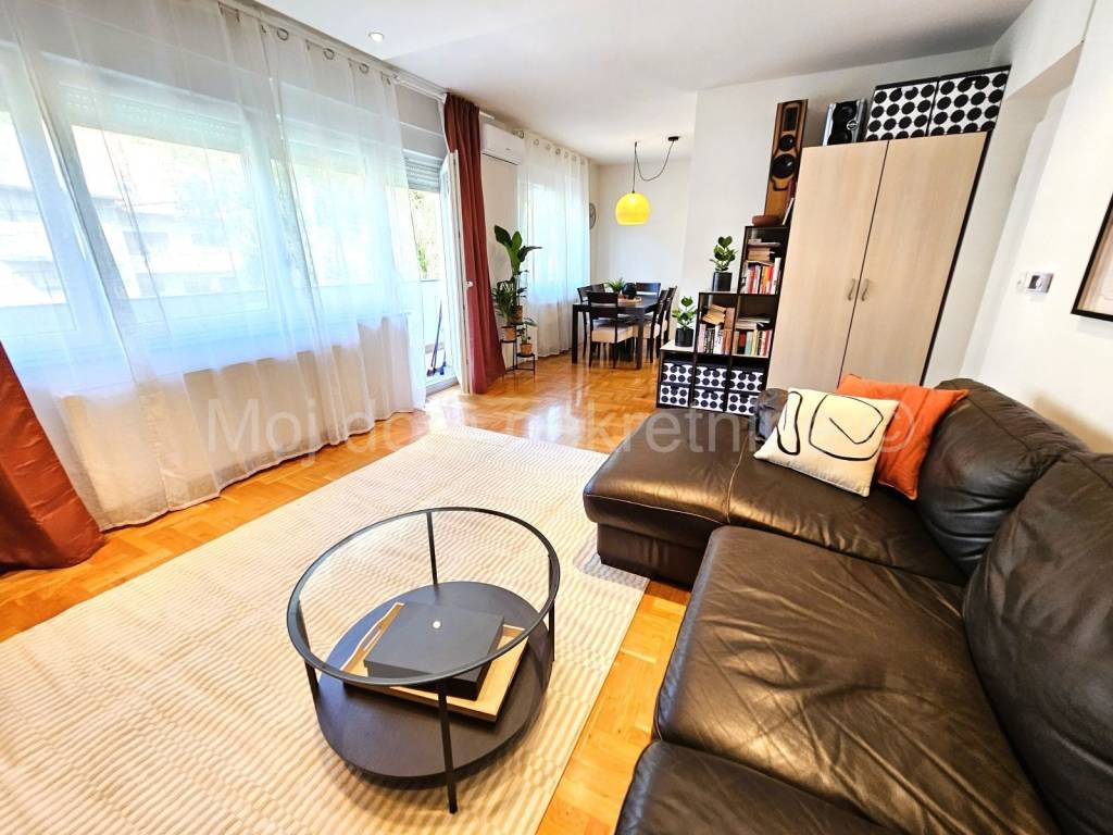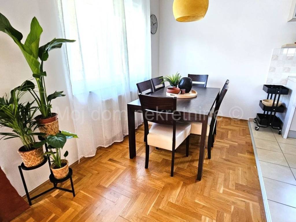 Prodaje se lijep 3soban stan s balkonom na 2.katu od 3.kata manje stambene zgrade. U stanu je 2024.godine renovirana kupaonica, toalet i hodnik, postavljene su nove sanitarije i nova sobna vrata. Stan je opremljen klima uređajem, protuprovalnim vratima i PVC stolarijom. Izrazito je svijetao radi svoje trostrane orijentacije i ima pogled na zelenilo. Prodaje se kompletno namješten. Pripada mu garaža veličine 10.33m2 te parkirno mjesto ispred garaže. Zgrada je građena 1970. godine, a kompletno je uređena 2006. godine kada je postavljena nova fasada, promijenjene su sve instalacije, uređeno je stubište te je kompletno uređen krov. Nalazi se u blizini nekoliko osnovnih i srednjih škola, nekoliko vrtića, bolnice i javnog prijevoza. Udaljen je 10-ak minuta javnim prijevozom od Trga bana Jelačića. U kvartu se nalaze svi sadržaji potrebni za život kao što su Super Konzum, Interšpar, pošta, ljekarna i ostalo. Energetski certifikat C.