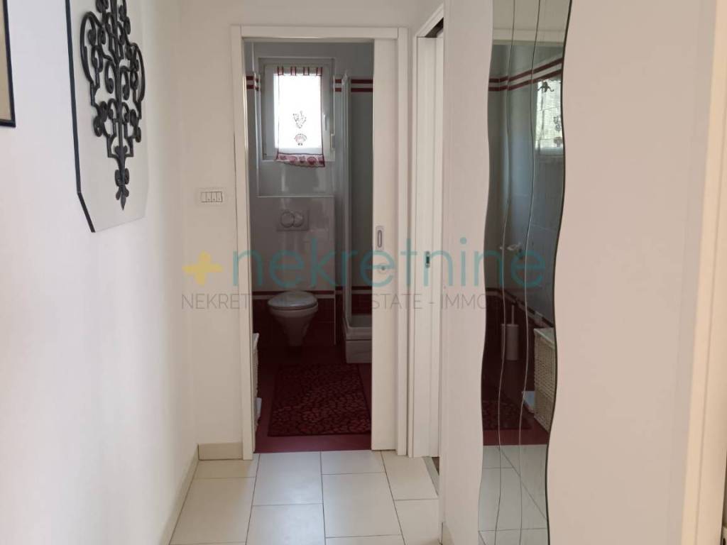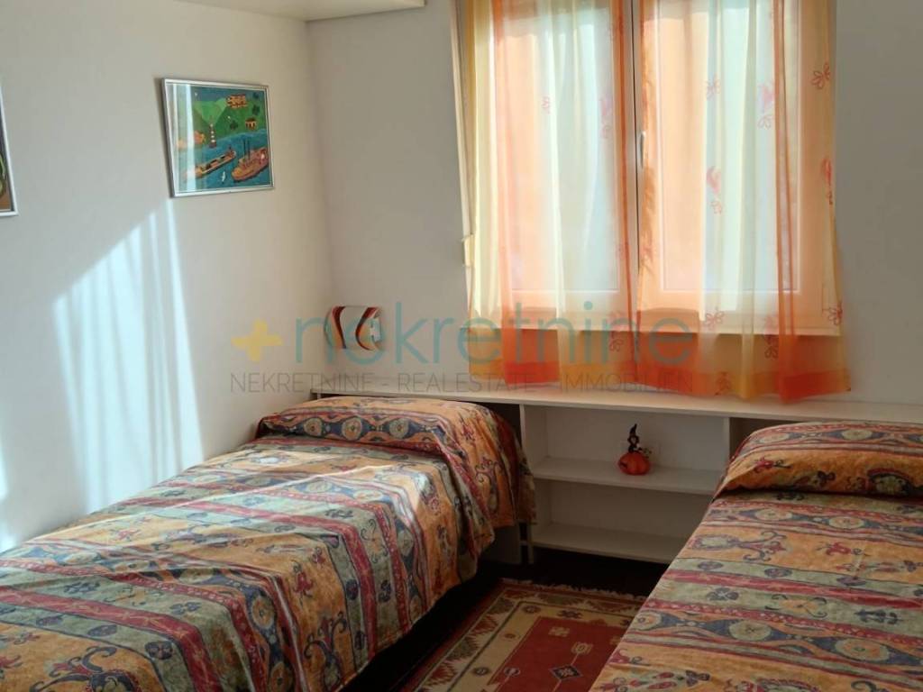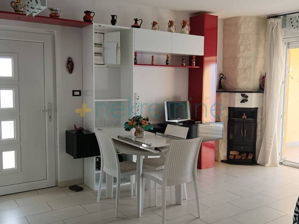 Interijer je elegantno uređen s parketima u spavaćim sobama, dok su ostatak stana obložene visokokvalitetnim pločicama. Dnevni boravak dodatno krasi kamin na drva, koji stanu daje toplinu i ugođaj doma.