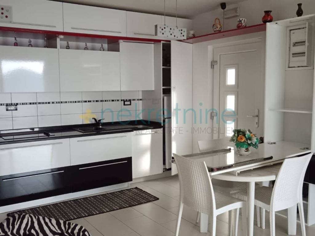 Stan se prodaje potpuno namješten, s namještajem po mjeri i svim potrebnim kućanskim aparatima, te je odmah useljiv.