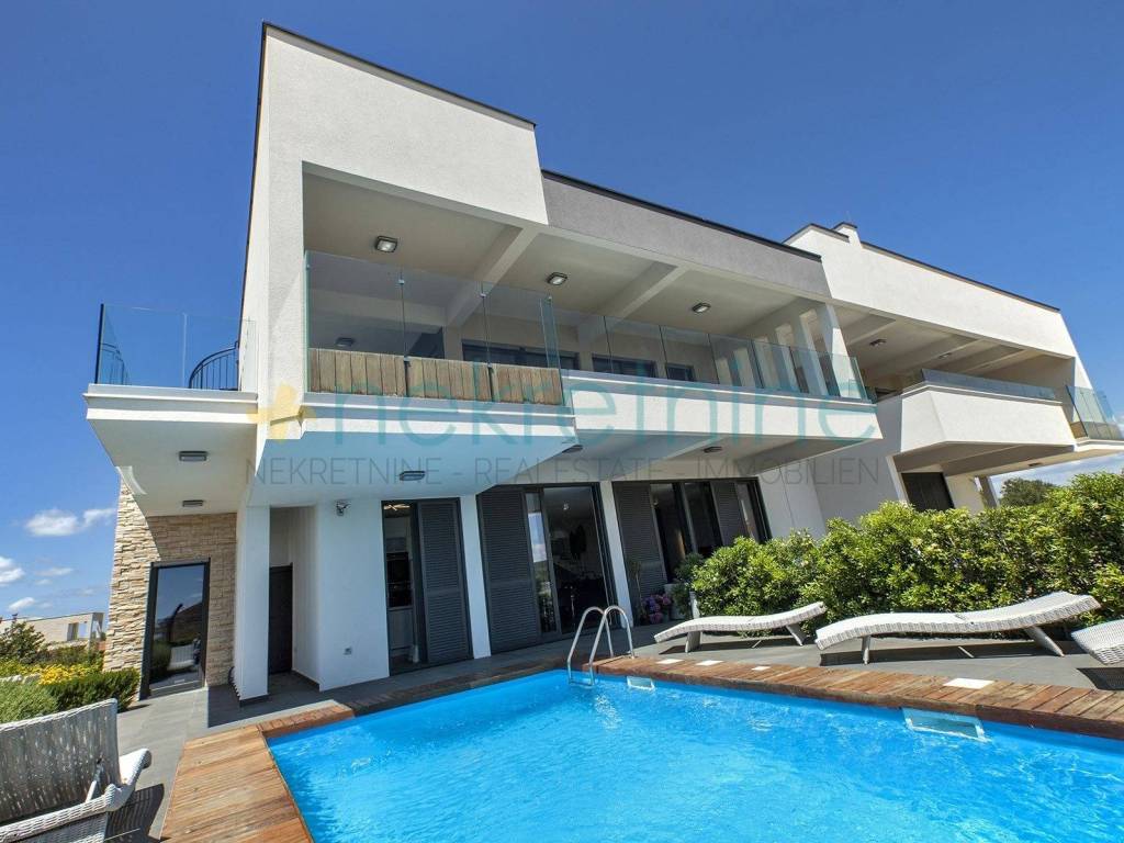 Luksuzna Villa u Sukošanu Drugi Red do Mora! Prodaje se moderna dvojna vila na elitnoj lokaciji u Sukošanu, samo 50 m od mora. Karakteristike nekretnine: Površina: 348 m Vrt: 173 m Prostorije: 3 spavaće sobe 3 kupaonice Veliki dnevni boravak s kuhinjom Praonica i ostava Garaža Bazen Posebnosti: Drugi red do mora Potpuno opremljena i prodaje se s namještajem Ova vila idealna je za luksuzni život ili kao investicija za turističko iznajmljivanje. Kontakt za više informacija i dogovor za razgledavanje: Jakov Kutija +385 95 893 8595 Jakov@plusnekretnine.hr