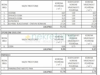 Stan S6 ima sveukupnu površinu od 77,76 m (obračunski 64,53 m), a sastoji se od: