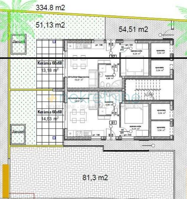 Četverosobni stanovi na 2. katu imaju ekskluzivne krovne terase s kupaonicom, WC-om i predviđenim jacuzzijem