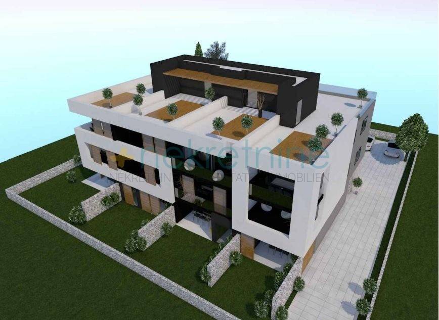 LUKSUZAN TROETAZNI STAN PRIVLAKA, DRUGI RED OD MORA Prodaje se prostrani dvosoban stan (S8) na tri etaze u Privlaci, u neposrednoj blizini Zadra. Ukupna površina stana s pripadcima iznosi 131,06 m. Stan se nalazi u zgradi s 10 stambenih jedinica, smještenoj drugi red od mora. Prilaz zgradi je privatan, ograđen i osiguran sustavom pristupa putem šifre ili kartice, što vlasnicima osigurava potpunu privatnost i sigurnost. KARAKTERISTIKE STANA: Ulazni hodnik Prostrani dnevni boravak s kuhinjom i blagovaonicom (33,88m2) Dvije spavaće sobe Dva moderna kupatila Wc Garderoba Praonica Lođa 1 (24,29m2) Lođa 2 (10m2) Krovna terasa (59m2) Vlastito parkirno mjesto na parceli