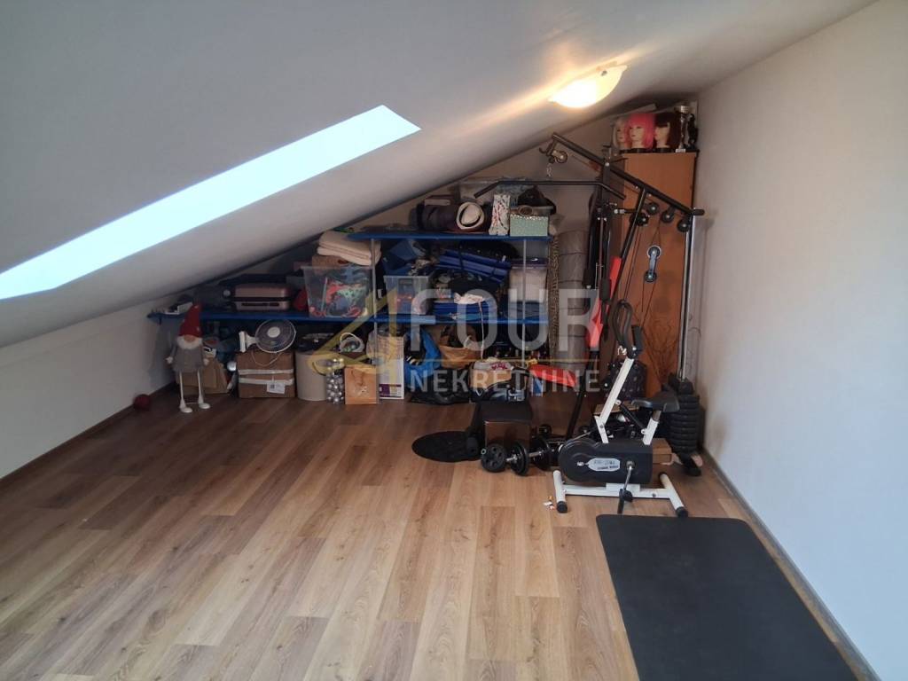Al piano inferiore si trova un corridoio, un bagno, due camere da letto e un soggiorno con cucina e sala da pranzo in un unico spazio aperto con accesso al balcone. Il piano superiore contiene una stanza e uno spazio aggiuntivo attualmente utilizzato come deposito (adatto per un ufficio e simili). Inoltre, il piano superiore offre la possibilità di creare un'unità aggiuntiva, poiché le connessioni idriche e fognarie sono già installate, consentendo una pianificazione semplice della cucina e del bagno su quel piano. L'appartamento è dotato di infissi in PVC, aria condizionata e radiatori norvegesi.