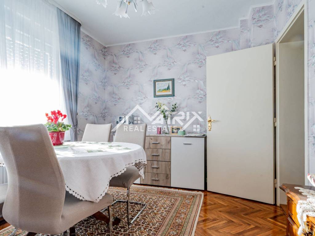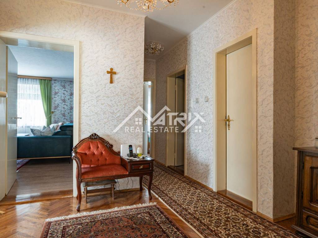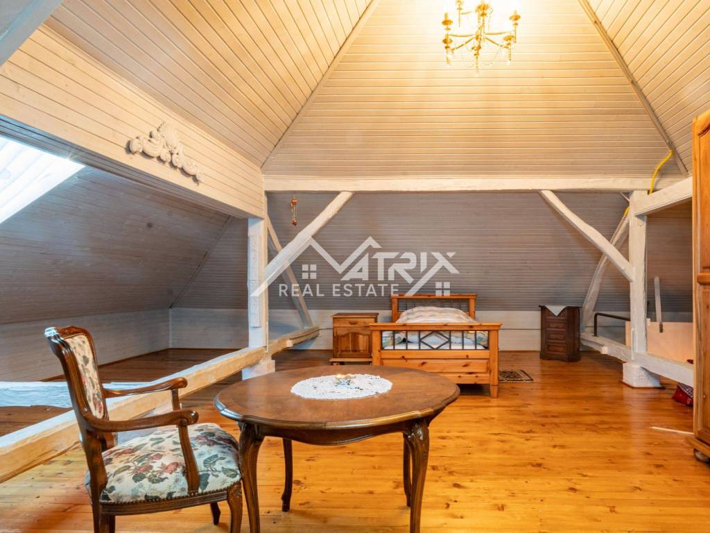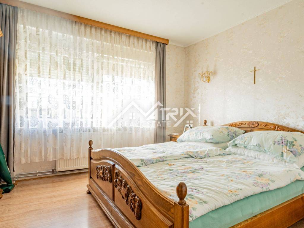 For sale is a family home located on a spacious 1089 m² plot in a quiet area of Beli Manastir. The property includes a landscaped yard, an auxiliary building, and a charming attic with wooden floors and sloped ceilings—perfect for an additional bedroom, office, or hobby space.