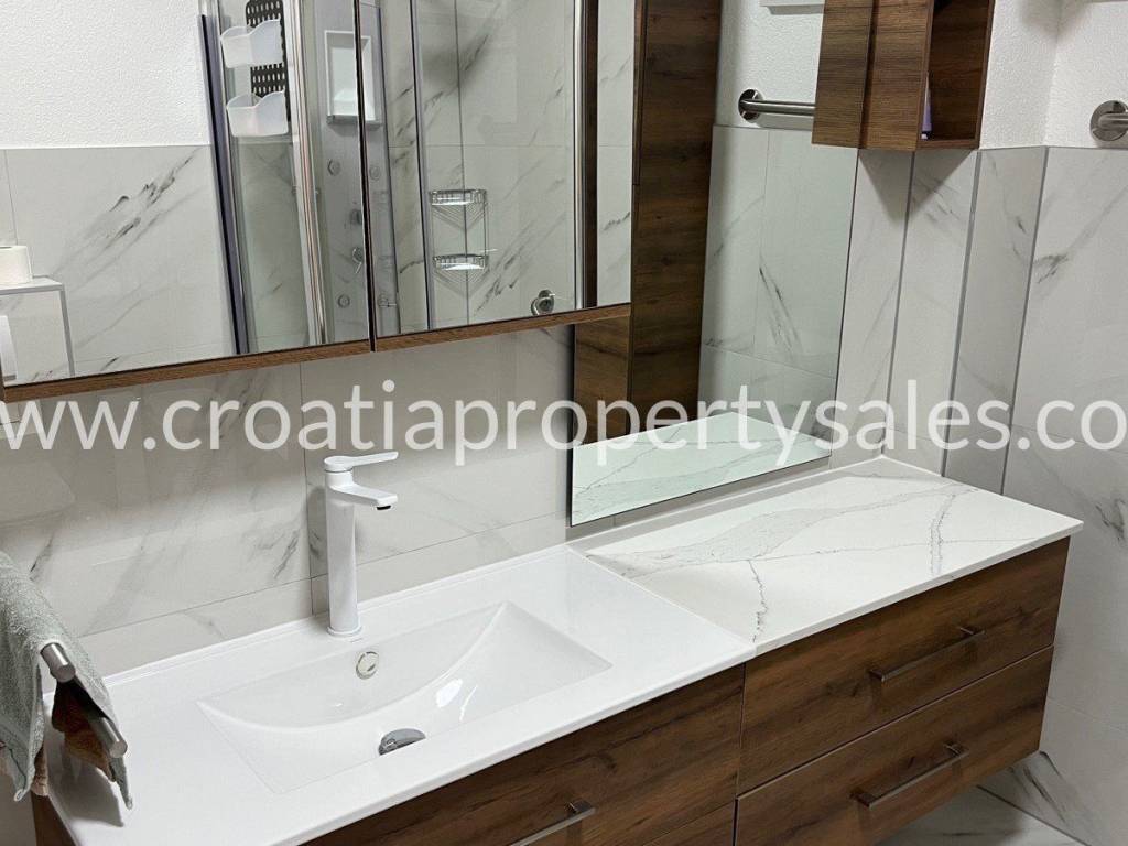 A beautiful villa with a swimming pool in the hinterland of Vodice, 10km from the sea.The villa consists of 2 apartments on the ground floor and a first floor:The ground floor (135 m2) consists of an entrance hallway, two bathrooms, two bedrooms, hall, kitchen, living room, dining room and  terrace. The first floor (110m2) consists of a hallway, wc, kitchen, dining room, living room, office, terrace, two bedrooms and two bathrooms.The villa is sold with new, unused furniture, a finished garden, a swimming pool, walls and fences around the property, an entrance gate and covered parking spaces, a storage room for tools and sunbeds, an outdoor grill, a covered pergola outside for sitting on the outdoor terraceThe villa was built in 1990 and completely renovated in 2024/2025.A new roof, gutters, a new facade, all new plumbing and electrical installations, new plastering, new screed in all rooms, 6 air conditionersThe villa is ideal for use by a larger family or for two families, and extremely attractive for tourist rental.It has 4 parking spaces.