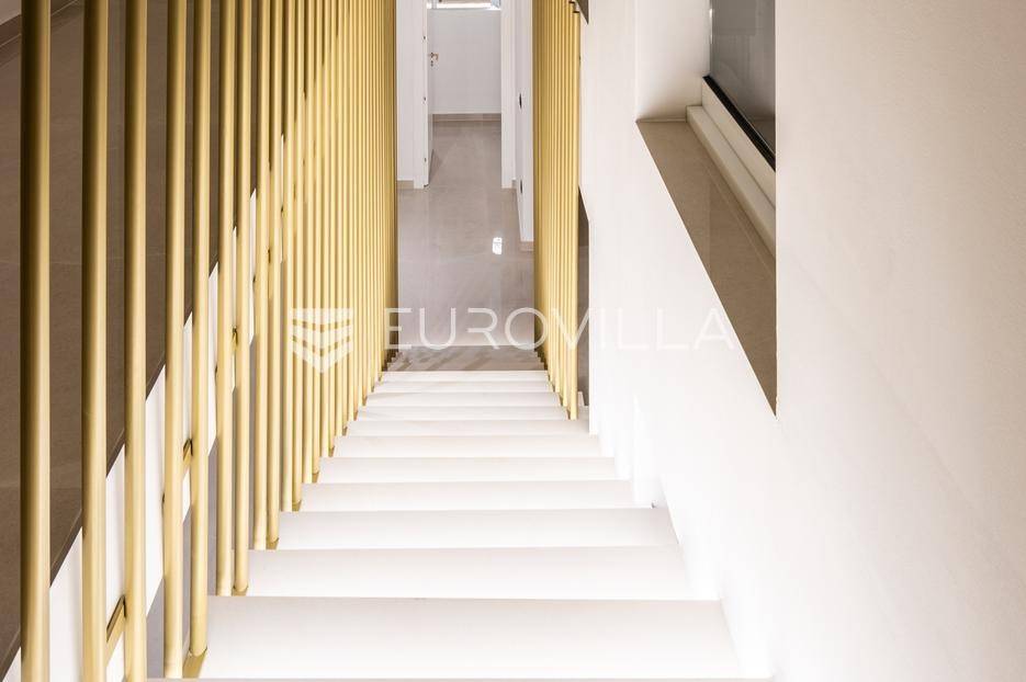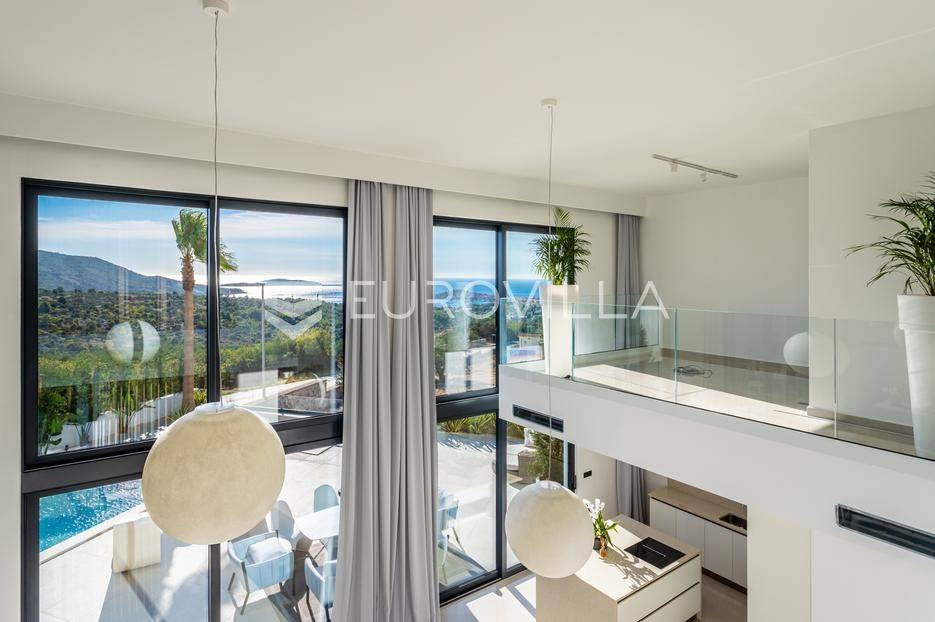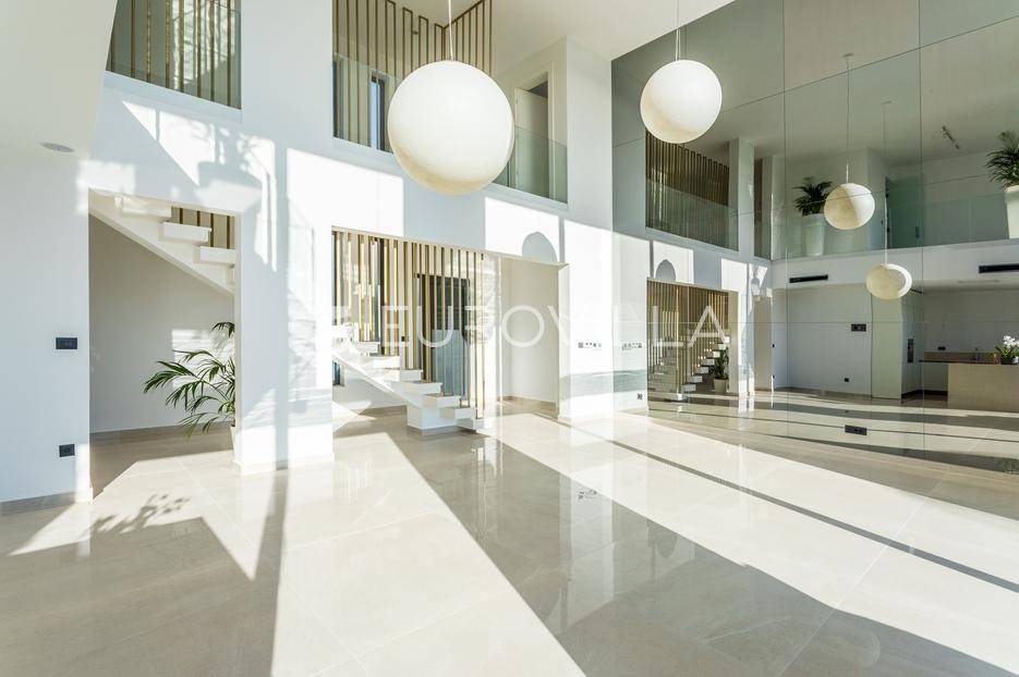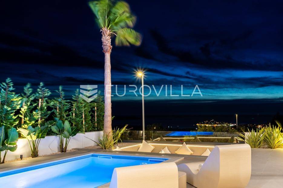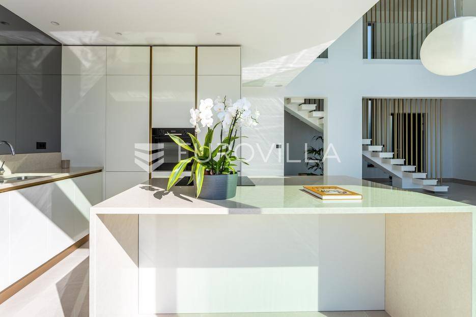 Na izuzetnoj lokaciji u rezidencijalnom dijelu Primoštena smjestila se ova spektakularna vila koja pruža otvoren, panoramski pogled na more, šarmantni stari grad Primošten i okolne otoke. Okružena bujnim mediteranskim zelenilom koje dodatno naglašava atraktivan eksterijer, ova vila predstavlja savršen spoj luksuza, prirode i vrhunskog dizajna.Primošten je prekrasan mali gradić smješten na obali Jadranskog mora, između Šibenika i Trogira. Poznat po svojoj izuzetnoj ljepoti i šarmu, posjetitelje širom svijeta privlači slikovitim krajolikom, bogatom poviješću i svojim autentičnim mediteranskim šarmom. Uz Primošten se veže još jedno ime a to je “grad plaža”. Naime, Primošten je sa svih svojih strana okružen dugim pješčanim plažama koje oduzimaju dah svakog posjetitelja. Primošten se ubraja među najslikovitijim mjestima na Jadranu.Vila je smještena na parceli od 611 m2 i proteže se na 310 m2 stambene površine raspoređenih na dvije etaže.Svojim suvremenim dizajnom eksterijera i modernim uređenjem interijera koje je naglašeno vrhunskom opremom, vila pruža visoki standard življenja, nudeći pritom iznimnu udobnost i funkcionalnost. Svaki detalj ove spektakularne vile je pomno osmišljen, a rezultat je ova umjetnički uređena nekretnina s jedinstvenim pogledom na more i Primošten.Prizemlje otvorenog koncepta ispunjeno je prirodnom svjetlošću, koja kroz velike staklene stijene pruža prekrasan pogled na more. Ova etaža obuhvaća prostrani dnevni boravak, blagovaonicu i potpuno opremljenu modernu kuhinju talijanske marke Scavolini, stvarajući prostor koji će vas fascinirati svojim dizajnom i luksuzom. Također, ovdje se nalaze dvije spavaće sobe s privatnom kupaonicom i garderobom, gostinjski wc te ostava/praona.Jedna od najatraktivnijih značajki ove ekskluzivne vile je stakleni foaje koji svojom visinom od sedam metara omogućava panoramski pogled na more iz gotovo svakog dijela vile.Elegantan interijer ima direktan pristup pomno osmišljenom vanjskom prostoru idealnom za opuštanje i druženje s prijateljima i obitelji na kojem se nalazi hidromasažni bazen sa sunčalištem, lounge zona sa fire pit-om te prostor za ljetnu kuhinju s blagovaonskim stolom idealnim za večere na otvorenom.Unutarnje stepenice s kojih se vidi donja etaža i impresivan pogled na Primoštenski arhipelag vode na gornji kat, a sastoji se od luksuzne glavne spavaće sobe s vlastitom kupaonicom i garderobom, soba ujedno ima direktan pristup spa prostoru (sauna i jacuzzi), iz kojeg se pruža očaravajući pogled na more, što ovaj dio vile čini jednom od njezinih najvećih atrakcija. Na istom katu se nalazi još jedna spavaća soba sa privatnom kupaonicom i garderobom.Ova elegantna vila okružena je kaskadnim vrtom ispunjenim mediteranskim biljem i visokim palmama, te prostranim dvorištem s osiguranim parkirnim mjestima za četiri vozila.· Armirano betonska konstrukcija· Aluminijska stolarija· SunGuard staklene stijene· Četiri parkirna mjesta· Podno grijanje· Dizalica topline· Centralni bojler· Klimatizacija - Mitsubishi sustav· Grijani hidromasažni bazen (35 m2)· Fire pit· Četri spavaće sobe· Pet kupaonica· Spa prostor (Jacuzzi i sauna)· Integrirani sustav ozvučenja· Video nadzor· Automatsko navodnjavanje· Energetski certifikatViše informacija na upit.
