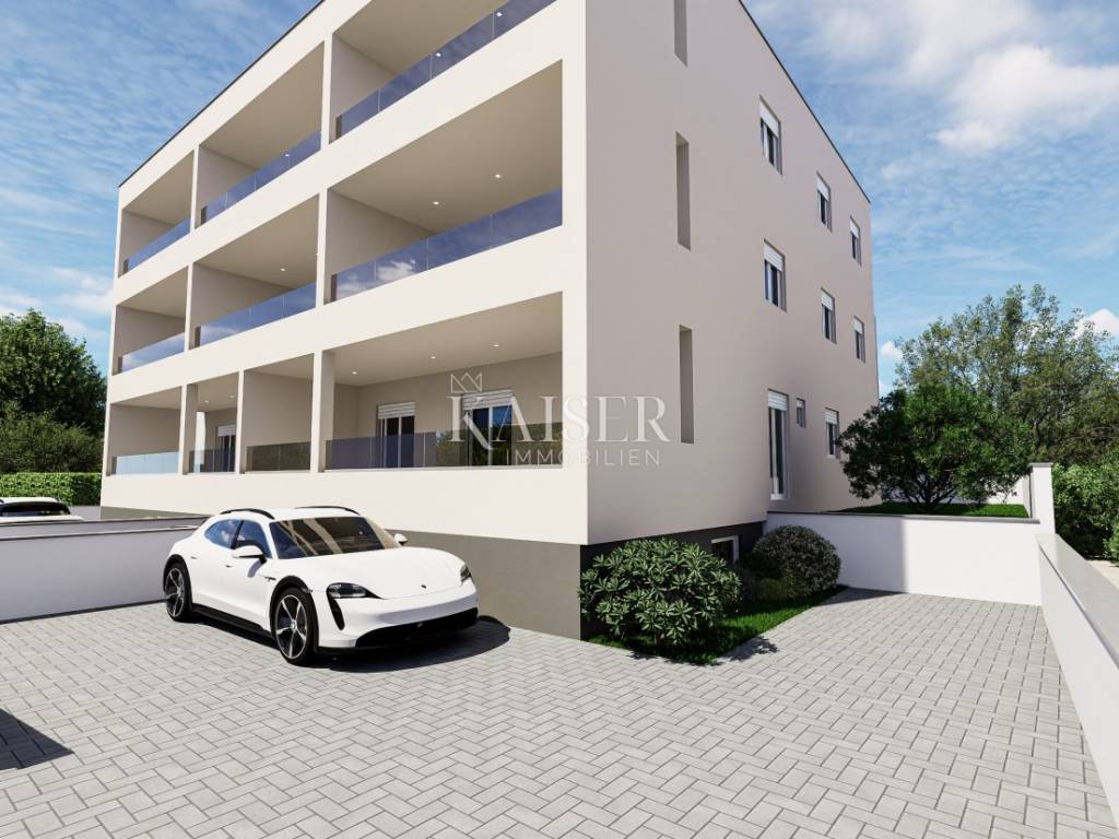 Zara, Crvene kuće - Appartamento in un nuovo edificio Un moderno appartamento in un nuovo edificio è in vendita a Zara, nel tranquillo e ben curato quartiere di Crvene kuće. L'appartamento si trova al primo piano di un moderno edificio residenziale con un totale di 8 appartamenti, orientato a sud-est con vista parziale sul mare, e la costruzione dovrebbe essere completata entro luglio 2026. Descrizione dell'appartamento L'appartamento è composto da un corridoio, due camere da letto, bagno, cucina con sala da pranzo e soggiorno e una loggia. La superficie utile netta dell'appartamento è di 71,23 m², mentre la superficie totale con accessori (ripostiglio, un garage e un posto auto esterno) è di 82,05 m². Attrezzature e costruzione L'edificio è costruito con blocchi Porotherm Profi da 25 cm di spessore, con isolamento termico in lana di roccia da 10 cm di spessore. I pavimenti sono in piastrelle e parquet e gli infissi in alluminio con taglio termico sono dotati di tapparelle elettriche, doppi vetri e zanzariere. Il soggiorno e le camere da letto sono dotati di aria condizionata, mentre il bagno è dotato di riscaldamento elettrico a pavimento. La porta d'ingresso è antieffrazione e ignifuga e si prevede che l'edificio abbia una certificazione energetica A. La posizione di Crvena kuće è un quartiere tranquillo e sicuro, ideale per la vita familiare. Nelle immediate vicinanze si trovano negozi, una scuola, un asilo, una farmacia e linee di autobus che collegano il quartiere con il centro di Zara e altre parti della città. La strada è tranquilla e ordinata, con sufficienti parcheggi e aree verdi. Sebbene sia a pochi minuti di auto dal centro città e dalle famose spiagge di Zara, il quartiere mantiene il suo carattere tranquillo e residenziale e offre una piacevole sensazione di privacy. La commissione di agenzia per l'acquirente è del 3% + IVA e viene pagata in caso di acquisto di un immobile, al momento della conclusione del primo atto legale. Contattateci con fiducia per maggiori informazioni e per fissare una visita. Tel: +385958122353 Email: kristina@kaiser-immobilien.hr