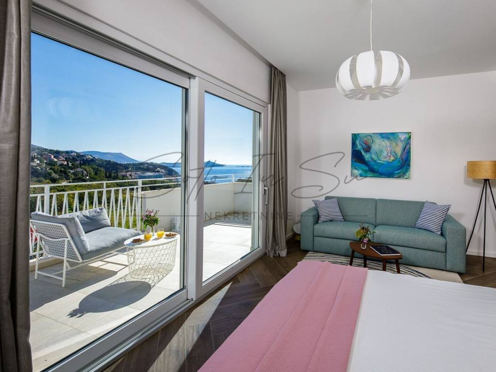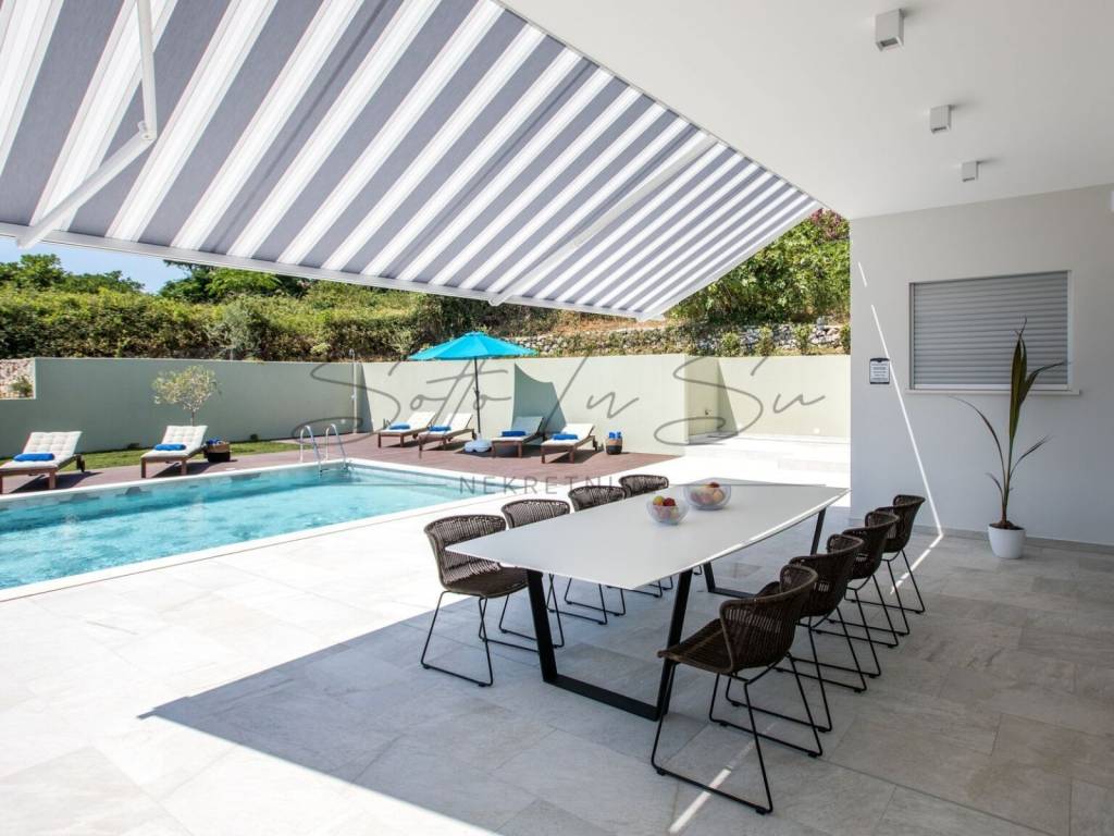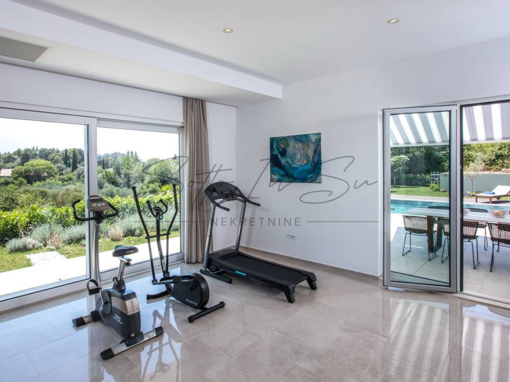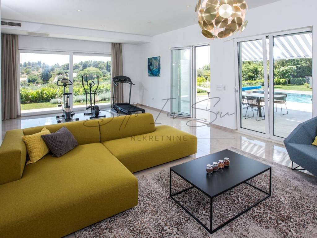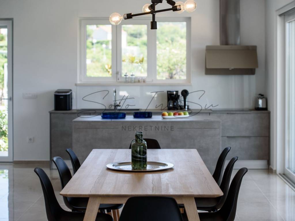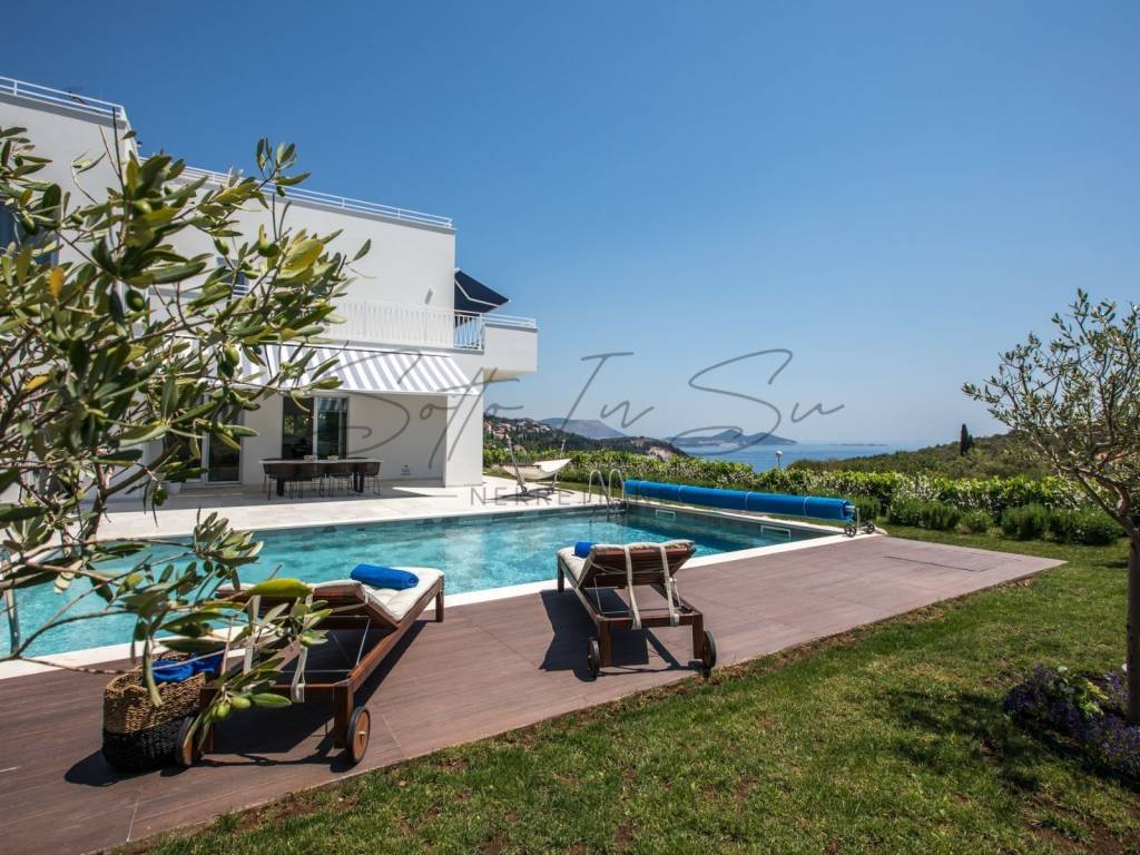A beautiful modern villa is for sale in the vicinity of Dubrovnik, located in Orašac. The villa is situated above the "Vrtovi sunca" complex, approximately 12 km from Dubrovnik. The property is categorized as a 5-star villa.