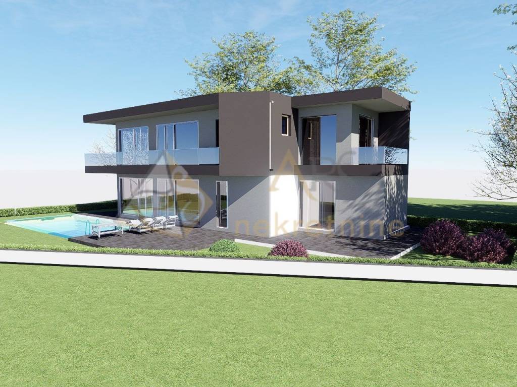 Idejnim projektom predviđena je moderna katnica s bazenom. Prizemlje, površine 99.71 m, obuhvaća prostranu kuhinju s blagovaonom i dnevnim boravkom, wc, pomoćnu prostoriju i luksuzni wellness. Unutarnje stepenice vode na kat, površine 198.17 m, gdje su smještene tri spavaće sobe s en suite kupaonicama te balkon koji pripada jednoj sobi.