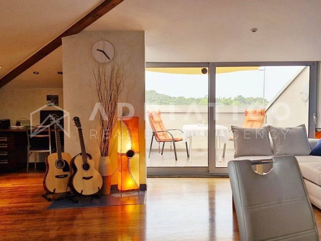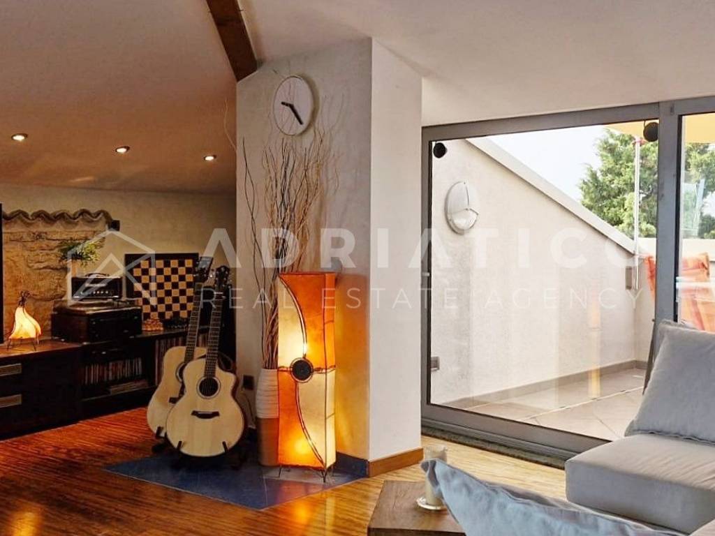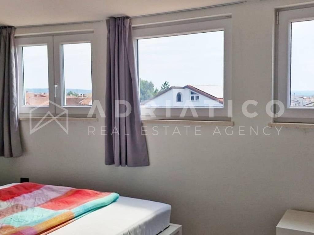 A soli 10 minuti a piedi dalla spiaggia si trova questo luminoso e accogliente appartamento di 90,60 m, situato allultimo piano di un edificio moderno in una delle zone più ambite di Rovigno.