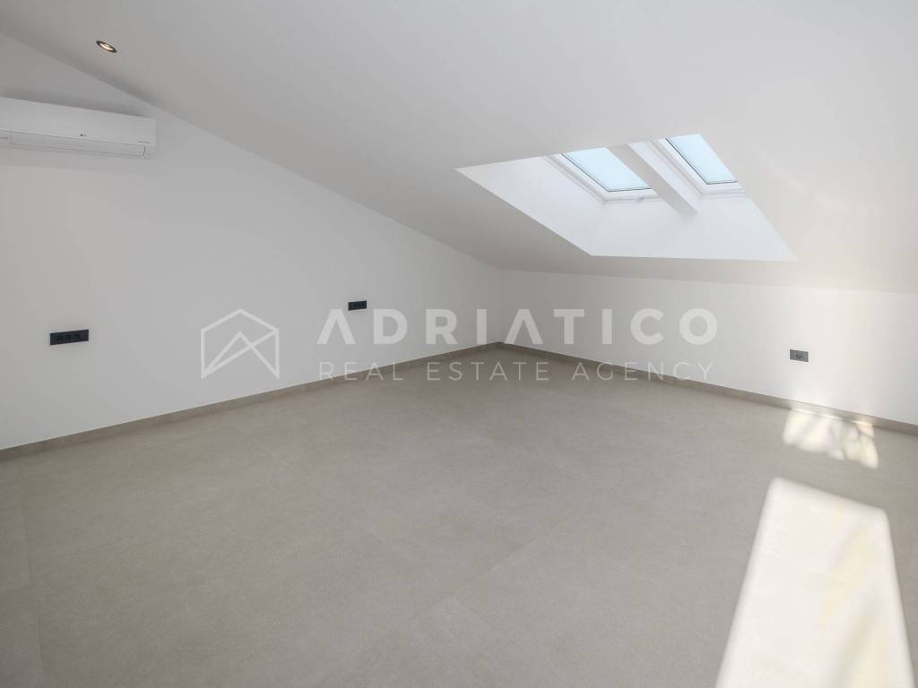 Questo spazioso appartamento si trova al 1 piano e mansarda di un edificio costruito secondo i più alti standard e in una delle migliori posizioni offerte dalla perla istriana di Rovigno.