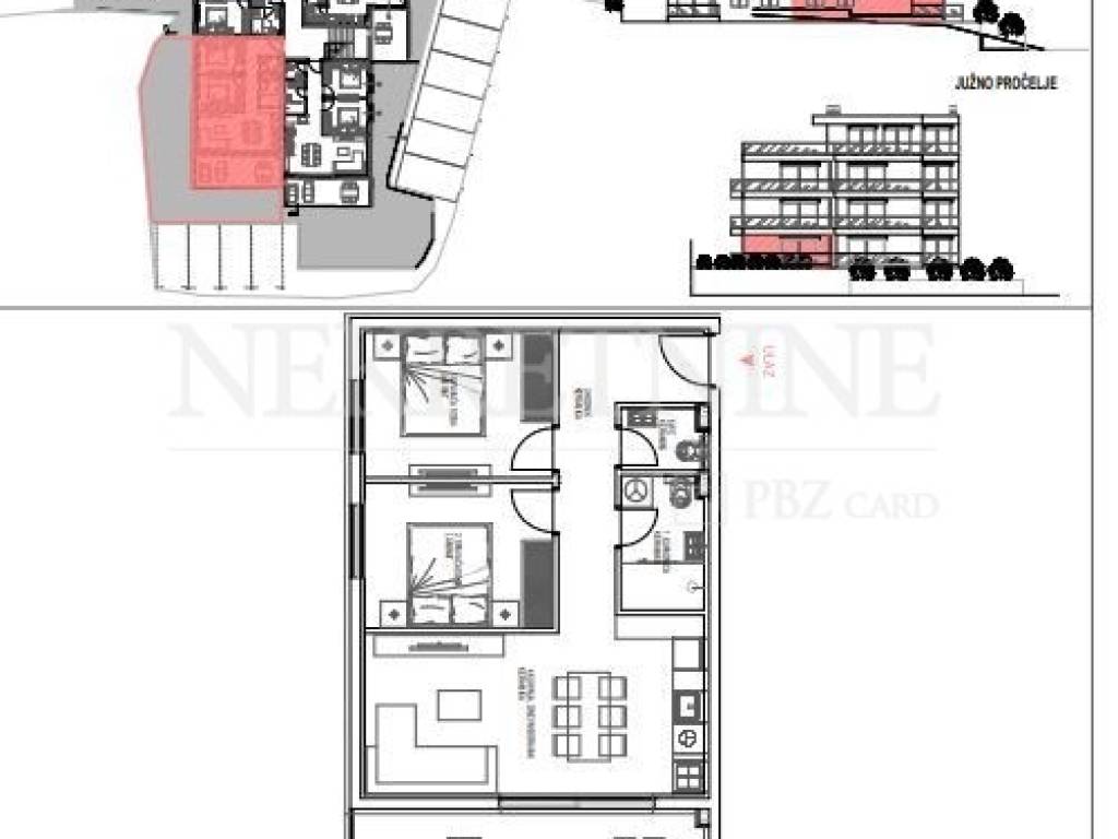Prizemlje: 76.71 m2 (terasa 15.00 m2, 1 parking mjesto, vrt od 71.35 m2 )