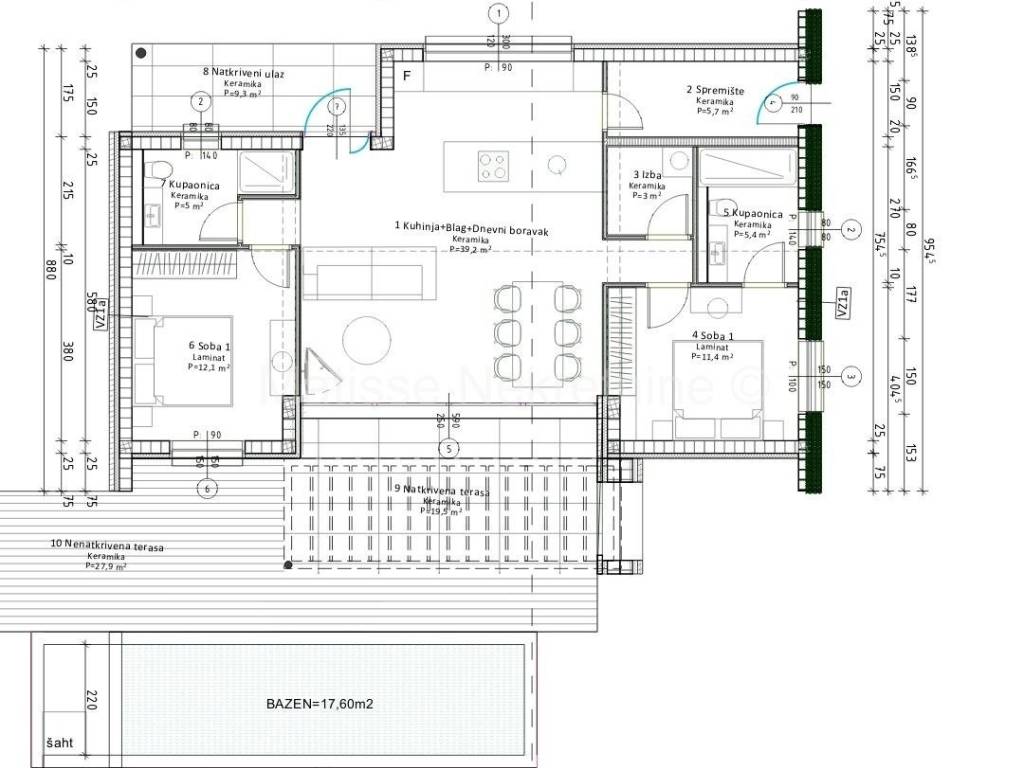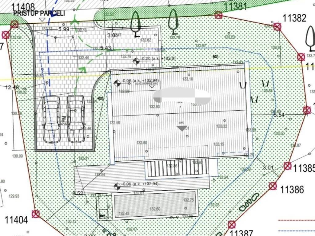 Prodajemo građevinsko zemljište na vrlo atraktivnoj lokaciji u neposrednoj blizini duge uvale. Zemljište je površine 610m2 te ima ishodovanu građevinsku dozvolu za gradnju kuće s bazenom. Kuća se po projektu sastoji od ulaznog hodnika, open space dnevnog boravka s kuhinjom i blagavaonom, 2 spavaće sobe, 2 kupaone, 2 spremišta te dvorišta gdje se nalaze 2 parkirna mjesta i bazen sa sunčalištem.
