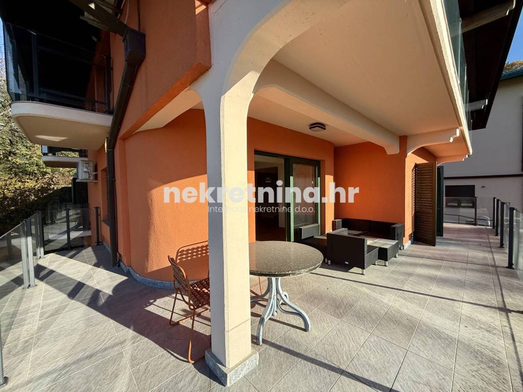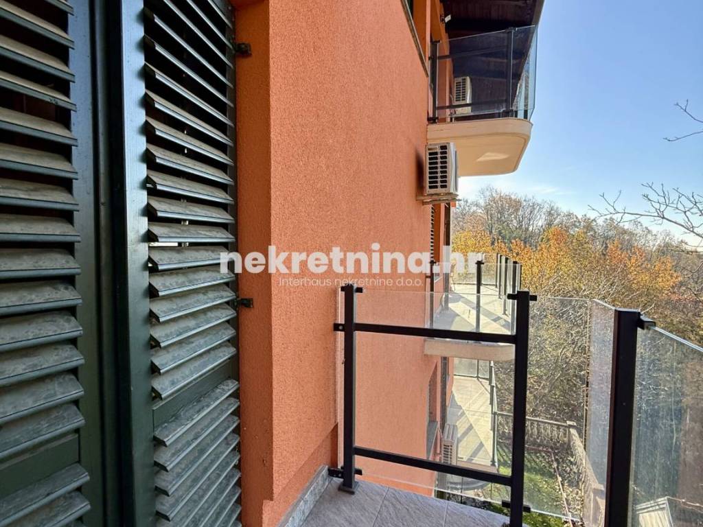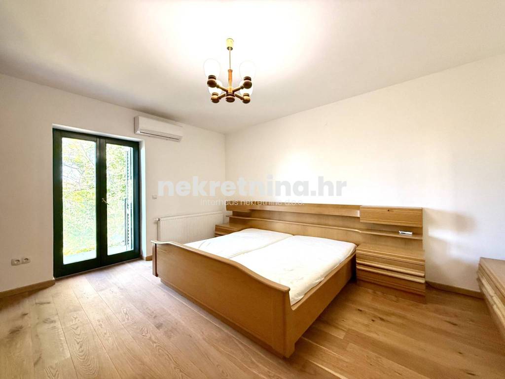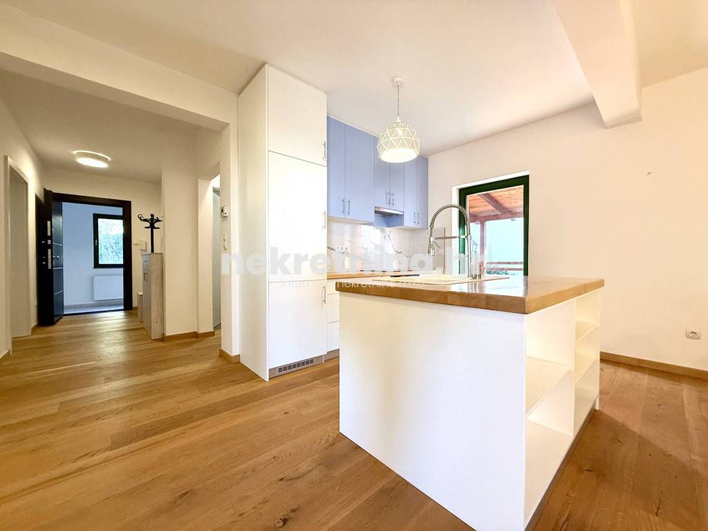 Iznajmljuje se novouređen trosoban stan zatvorene površine 108 m², smješten u visokom prizemlju manje novogradnje sa samo tri stana, u mirnoj ulici Majcenov put – Remete (Maksimir).