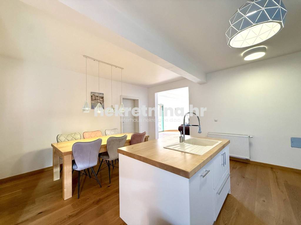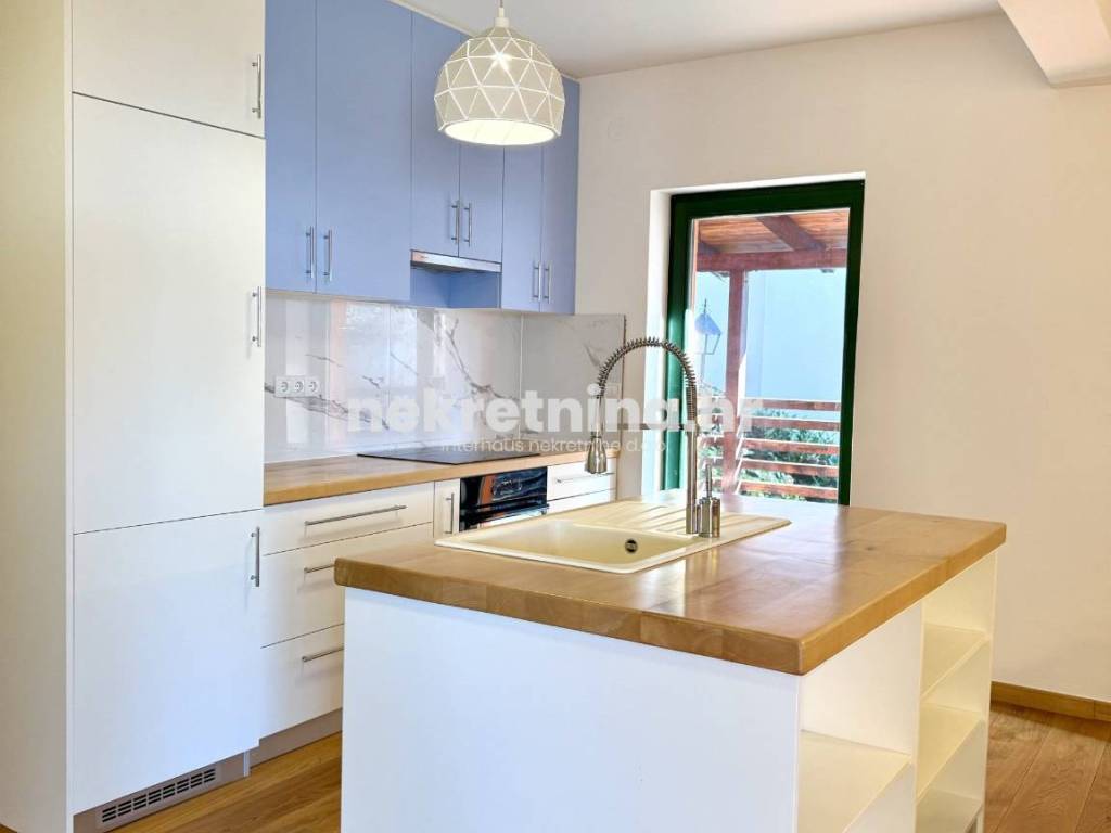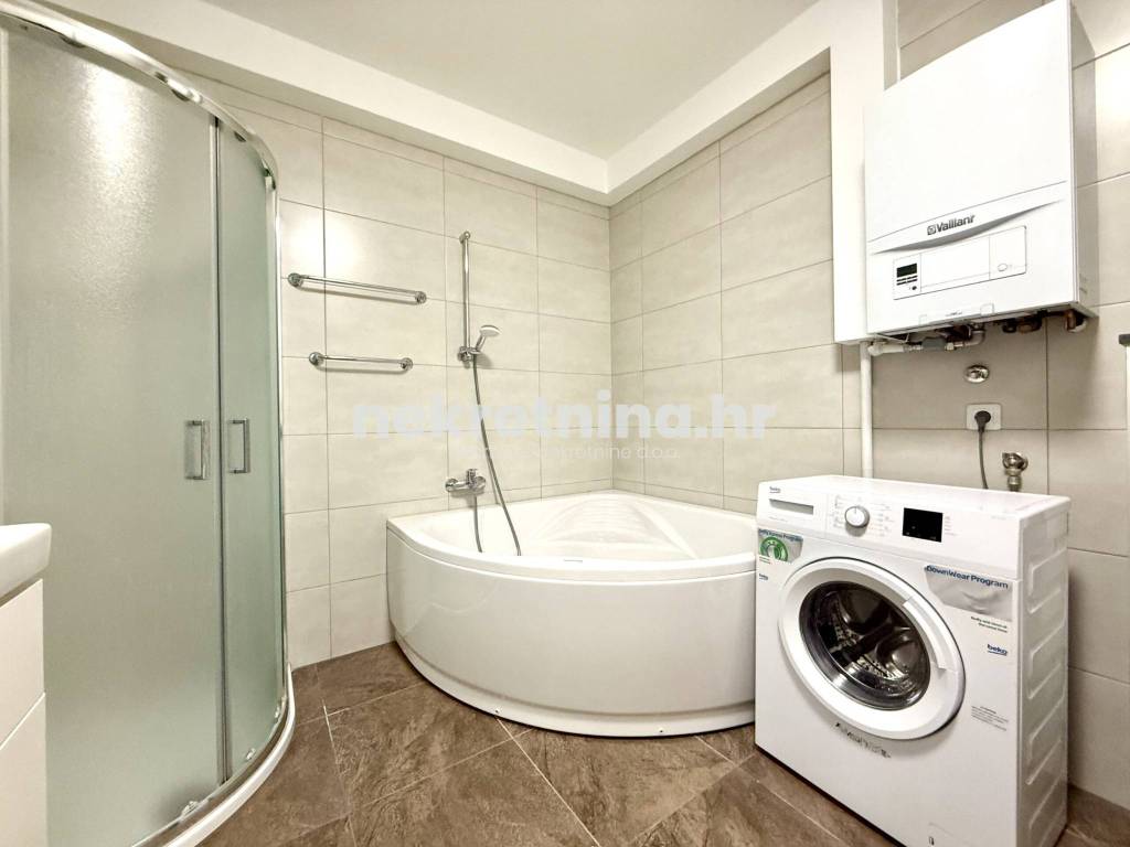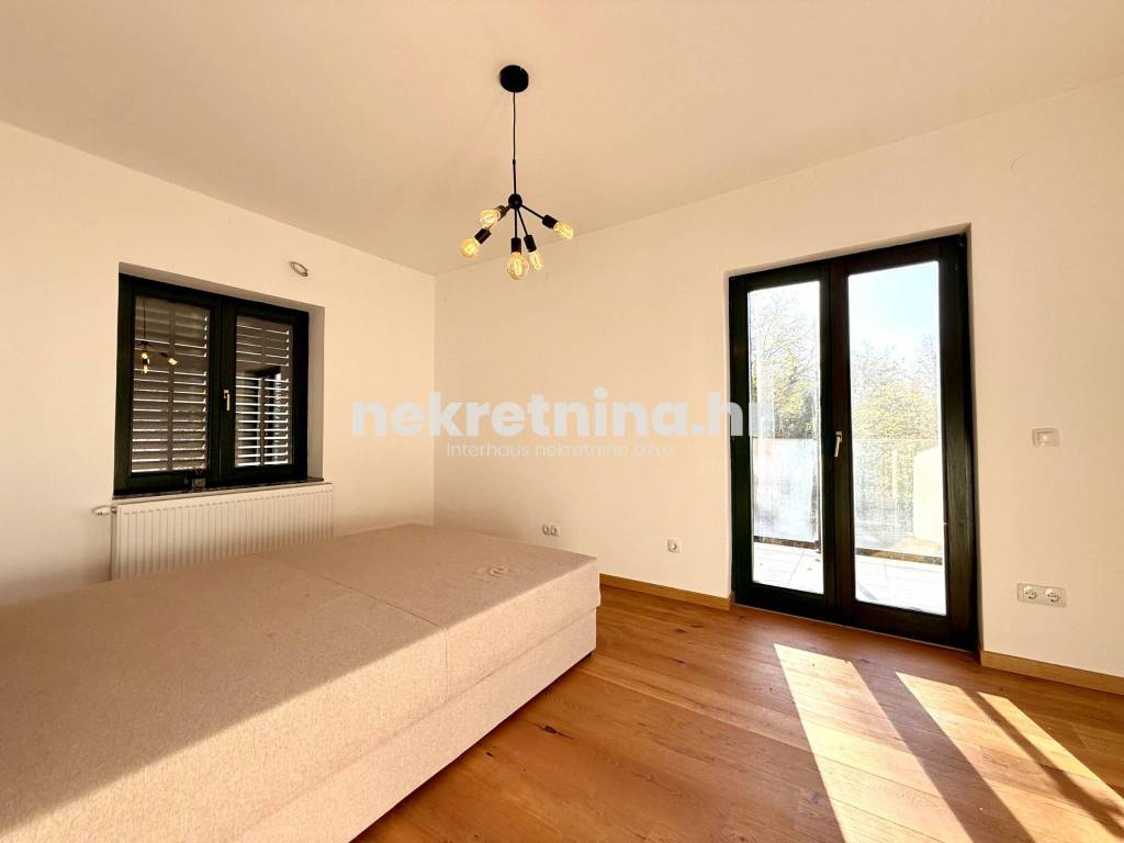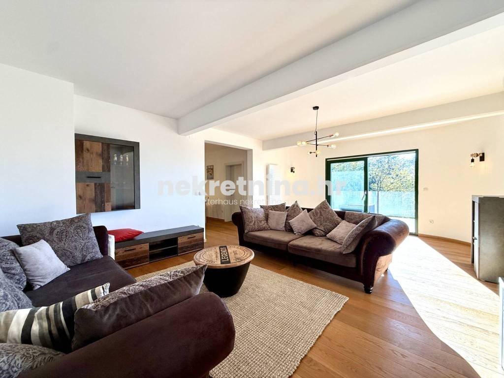 Iznajmljuje se novouređen trosoban stan zatvorene površine 108 m², smješten u visokom prizemlju manje novogradnje sa samo tri stana, u mirnoj ulici Majcenov put – Remete (Maksimir).
