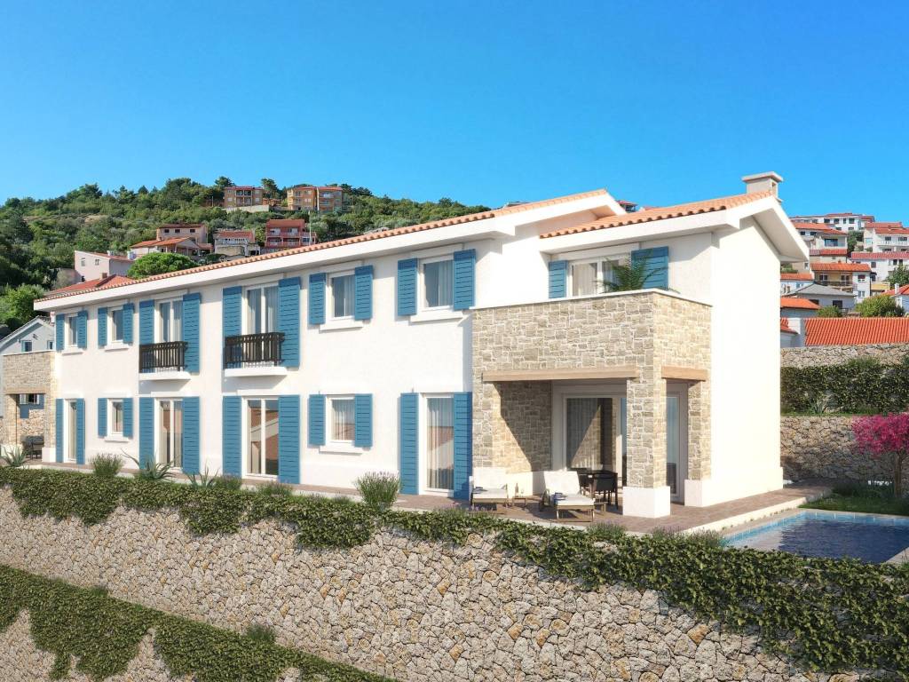 The apartment Top 1/3 is on the 1st floor, has 2 bedrooms, a living kitchen with a 12 sqm terrace facing the sea, bathroom/WC, and is located quietly and centrally in VRBNIK, an idyllic fishing village, as planned. Completion according to your design wishes is expected in 1.5 years after placing the order.