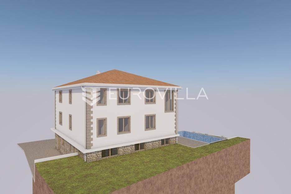 Hvar, Jelsa, jednosoban stan u izgradnji smješten u suterenu manjeg stambeno poslovnog objekta.Površina zatvorenog dijela je 45.9 m2.