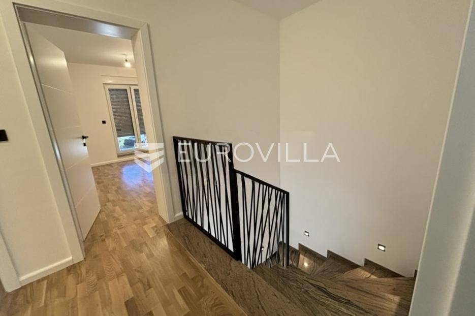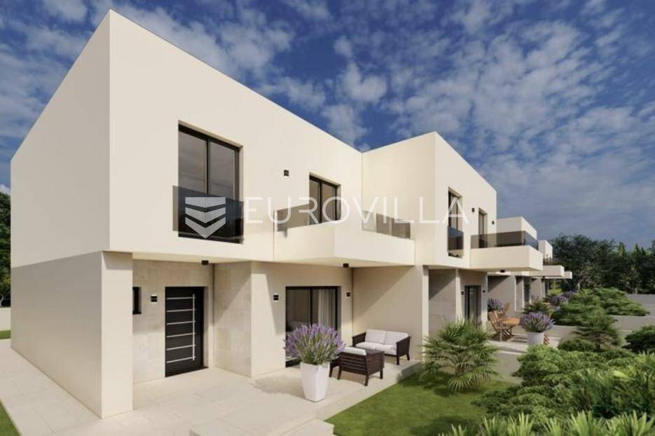 Kuća u nizu s lijepim rasporedom prostorija i visokom razinom energetske učinkovitosti. Smještena u mirnom i ugodnom okruženju, ova nekretnina predstavlja savršen dom za obitelj.Prizemlje je osmišljeno kao otvoreni koncept kuhinje, blagovaonice i dnevnog boravka, dok natkrivena terasa pruža idealan prostor za opuštanje i druženje na otvorenom. Uz to, na ovoj etaži nalaze se i gostinjski toalet, spremište te dodatno vanjsko spremište.Na katu se nalaze tri udobne spavaće sobe te dvije moderno uređene kupaonice opremljene vrhunskim sanitarijama renomiranih brendova Laufen i Geberit. U jednoj od soba nalazi se izlaz na prostranu privatnu terasu.Kuća je građena prema visokim standardima energetske učinkovitosti. Fasada s toplinskom izolacijom (10 cm) i troslojna PVC stolarija osiguravaju izvrsnu toplinsku i zvučnu zaštitu. Podno grijanje putem dizalice topline nudi ugodnu toplinu zimi, dok stropna klima omogućuje ugodnu temperaturu ljeti. Također, izvedena je priprema za solarne panele, čime je kuća spremna za buduća održiva rješenja.Za više informacija ili dogovor oko razgledavanja slobodno nas kontaktirajte.