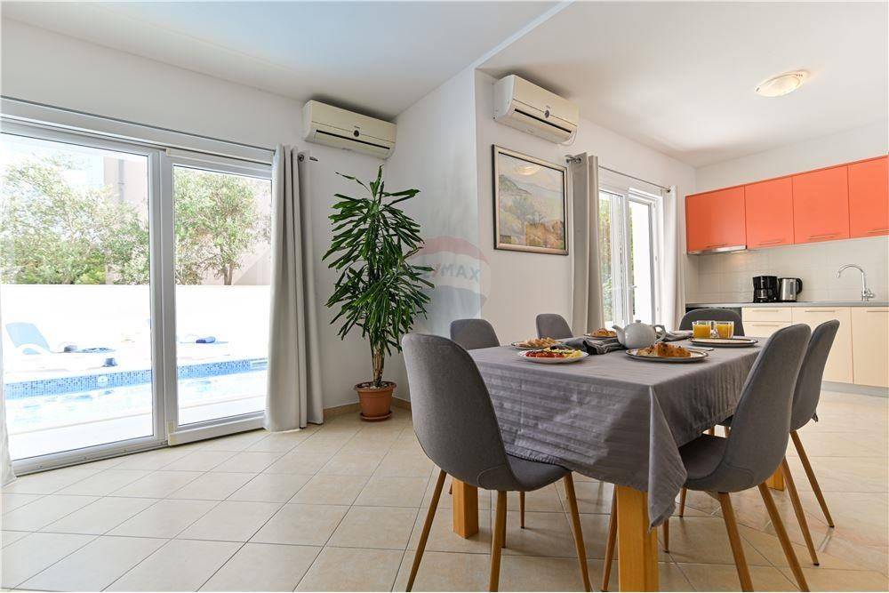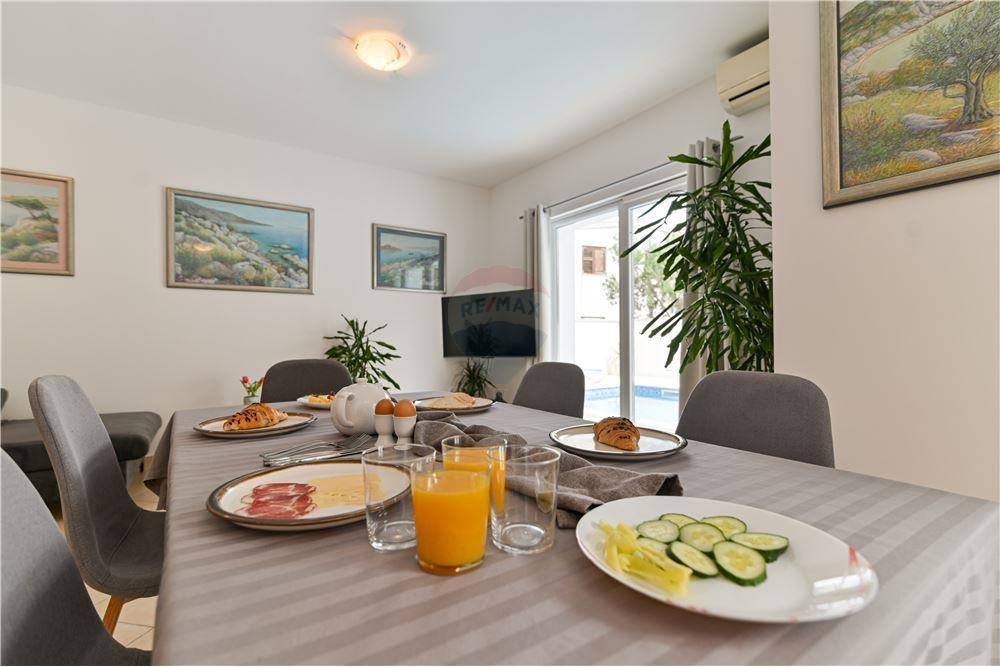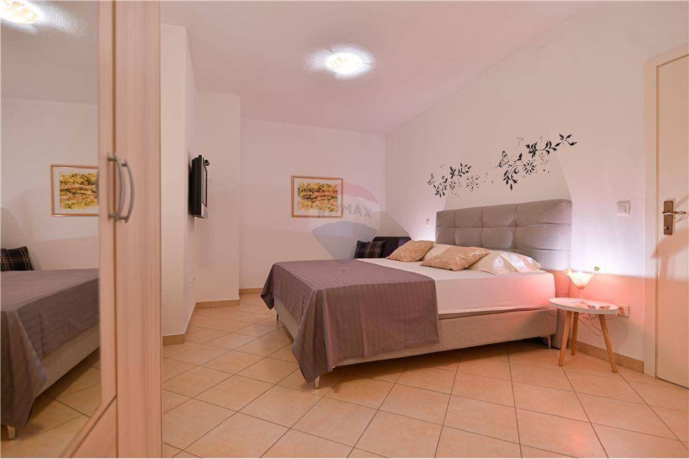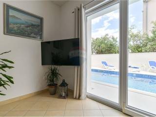 U naravi, sastoji se od velikog dvosobnog stana, vrtom s novoizgrađenim bazenom, studio apartmana, te velikim podrumom. Sve je etažirano i s urednim vlasništvom.