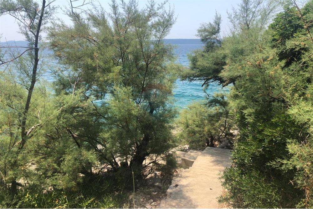 Udaljen je od lijepe stjenovite plaže svega 300 metara, a od pješčane plaže s južne strane otoka 500 metara.